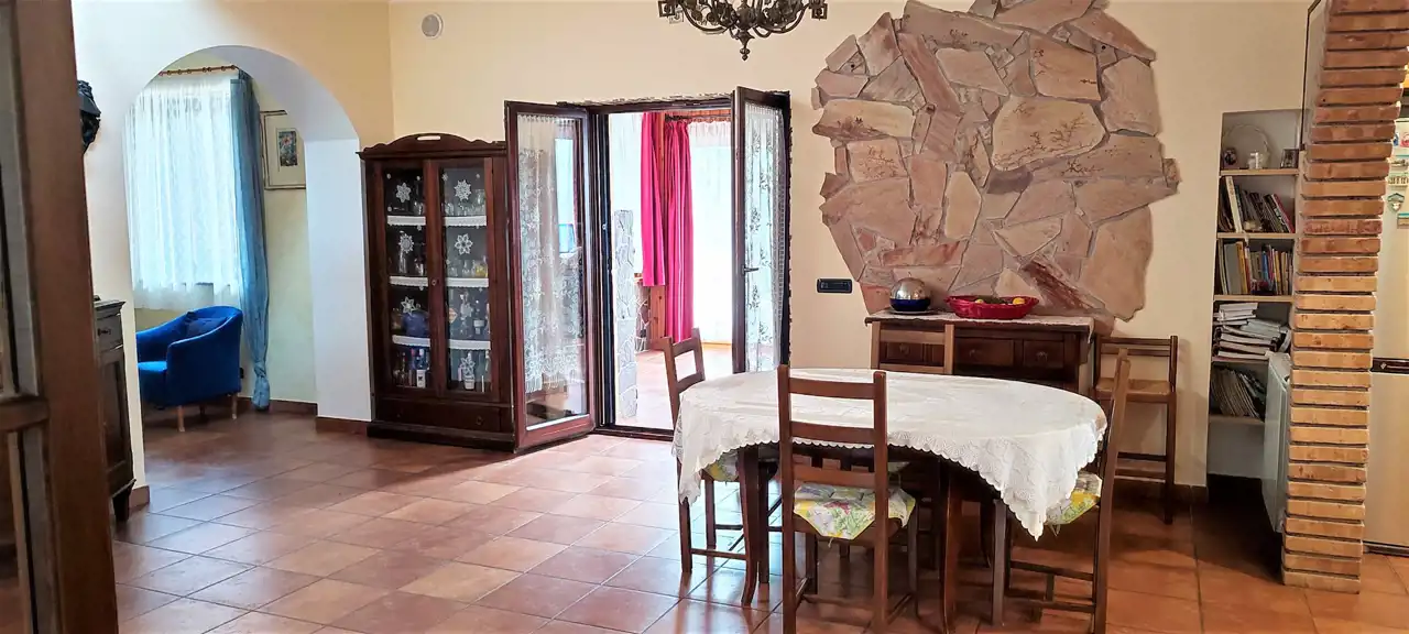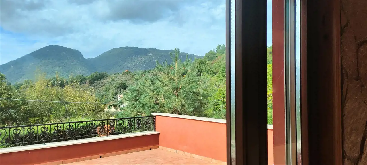 Przestronny ekologiczny dom ok. 120m2, zbudowany z cegły, plus domek 28 m2, podstawowe materiały wykończeniowe to marmur, granit, drewno. Z salonu na 1ym piętrze wychodzimy na obszerny 36 m2. taras, z którego rozciąga się zapierający dech widok na prowincję Lacjum i 2a miasteczka. Dom jest niezwykle piękny, otoczony śródziemnomorską roślinnością. Do miasteczka Gerano (dmina Gerano) ( 1300 rok prawa miejskie) 2 minuty autem.