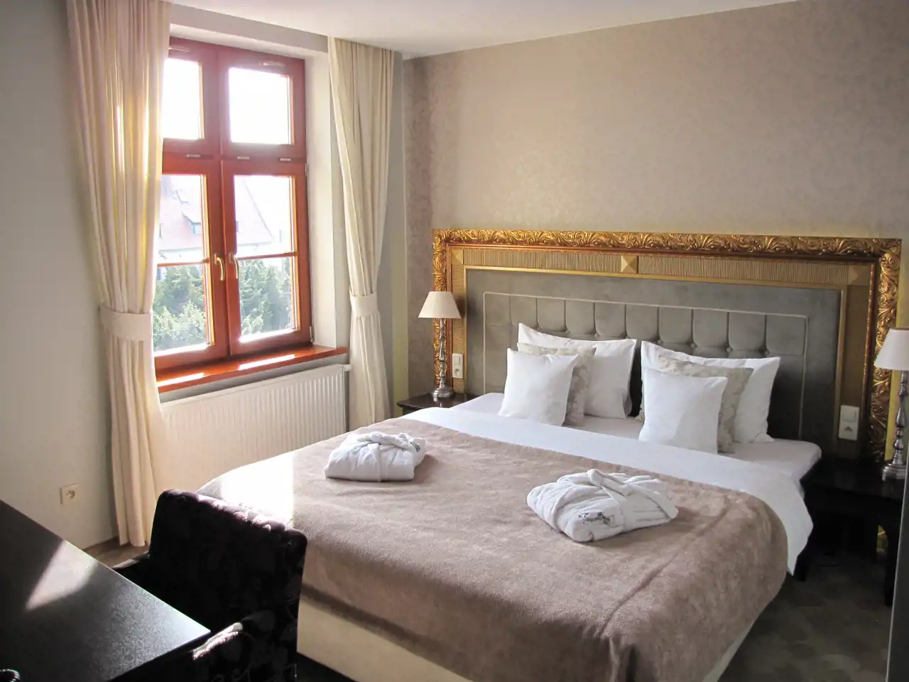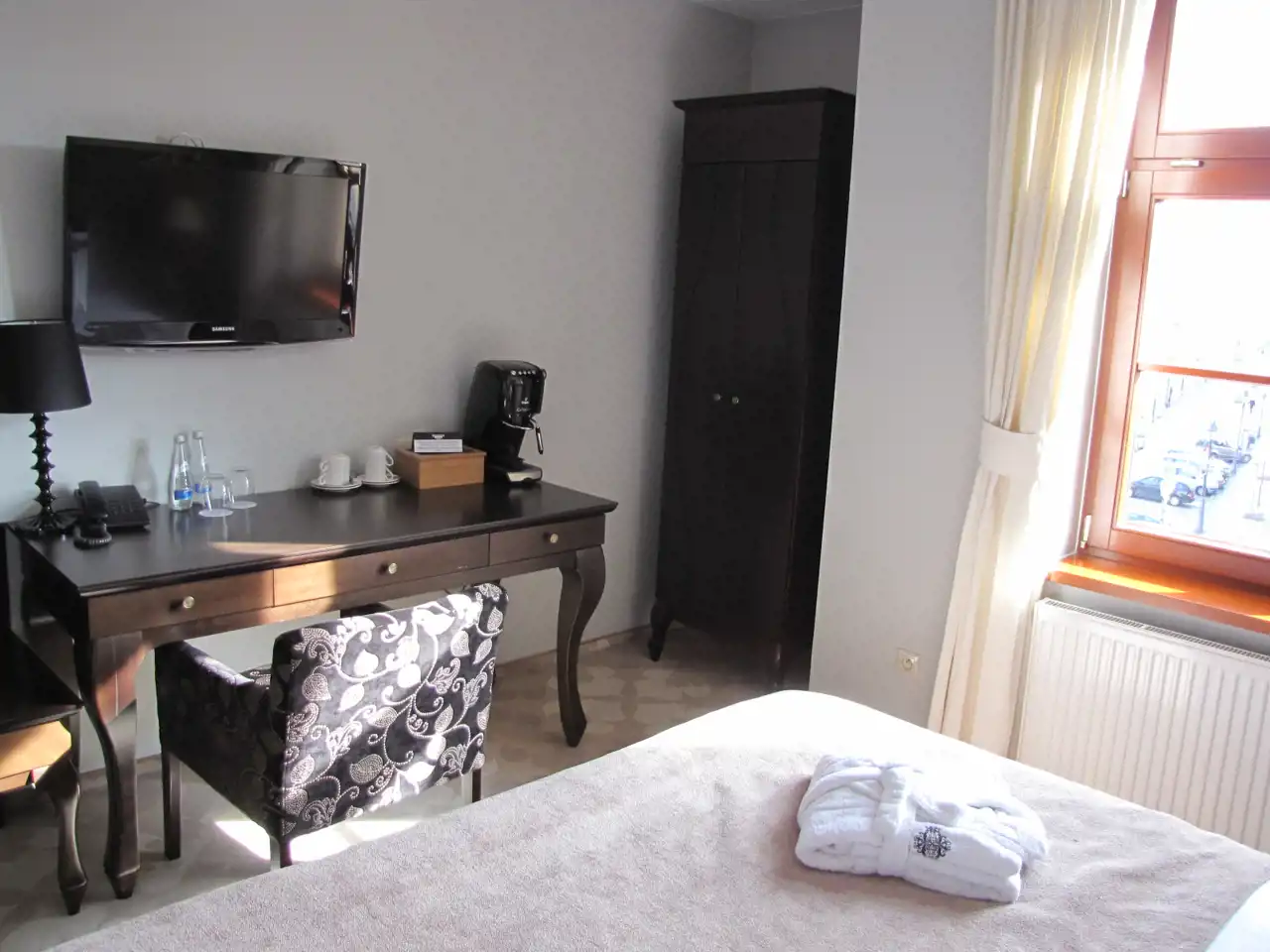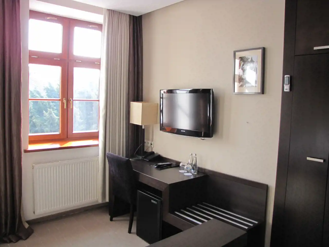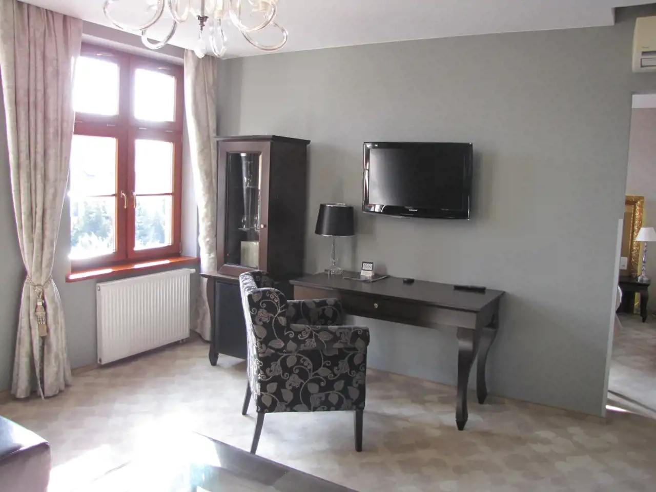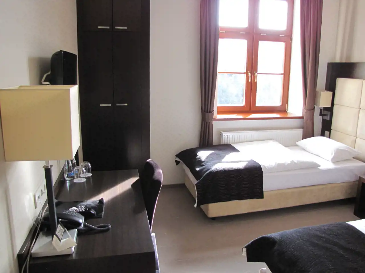 Hotel powstał po całkowitej przebudowie w 2010 r na fundamentach i ścianach z lat 40. Zewnętrzne ściany – nowo dobudowane z pustaka porotherm 24 cm+ docieplenie 15 cm. Stare ściany cegła lita. Dachówka ceramiczna karpiówka, stropy betonowe, ogrzewanie własne, gazowe, piec dwufunkcyjny. Wnętrze hotelu wykończone materiałami najwyższej jakości. Wszystkie pokoje o podwyższonym standardzie z meblami pod indywidualne zamówienie. Schody marmurowe, winda. Obiekt znajduje się w ścisłej strefie konserwatora zabytków. Konsultacje z konserwatorem wymagane tylko co do zewnętrznego wyglądu hotelu. Klimatyzacja w każdym pokoju. Atutem hotelu jest własna, bardzo dobra kuchnia. Restauracja na portalu Tripadvasior 5 gwiazdek na 5 możliwych. Ocena hotelu na portalu booking com 9,2/10. Hotel posiada dwa ogródki letnie , istnieje możliwość przebudowy jednego ogródka na całoroczny.