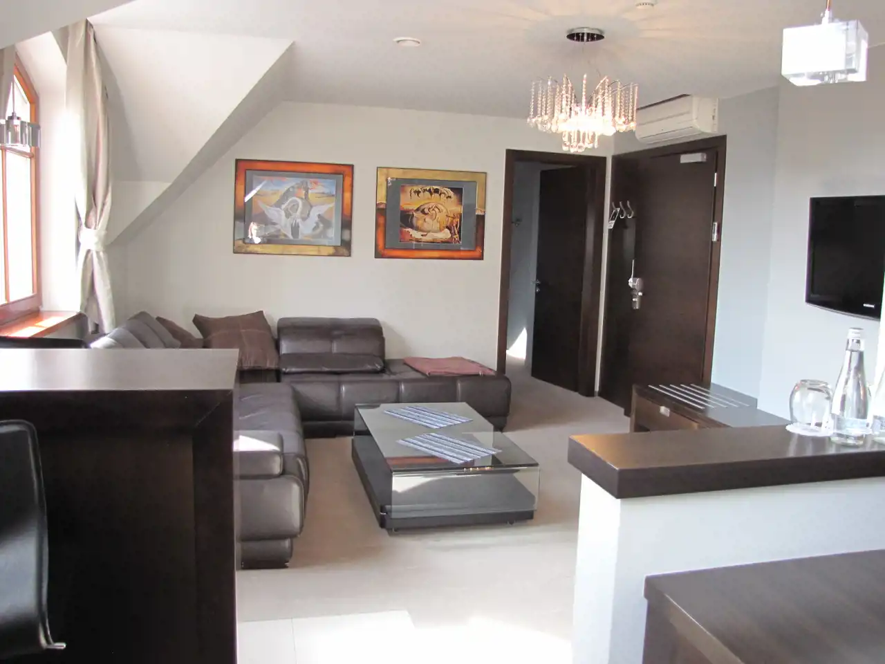 4 PIĘTRO ( 110,65 m.kw) składa się z apartamentu 40 m.kw wykorzystywanego również na salę konferencyjną, kotłowni i pom do wentylacji.