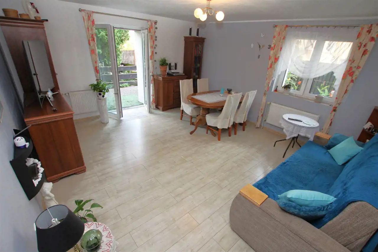 - Budynek po generalnym remoncie: dach pokryty blachodachówką, mury ocieplone styropianem, wymienione instalacje, światłowód, zamontowana fotowoltaika 5KW (pokrywa zapotrzebowanie na energię całego budynku).