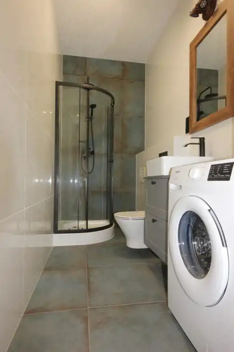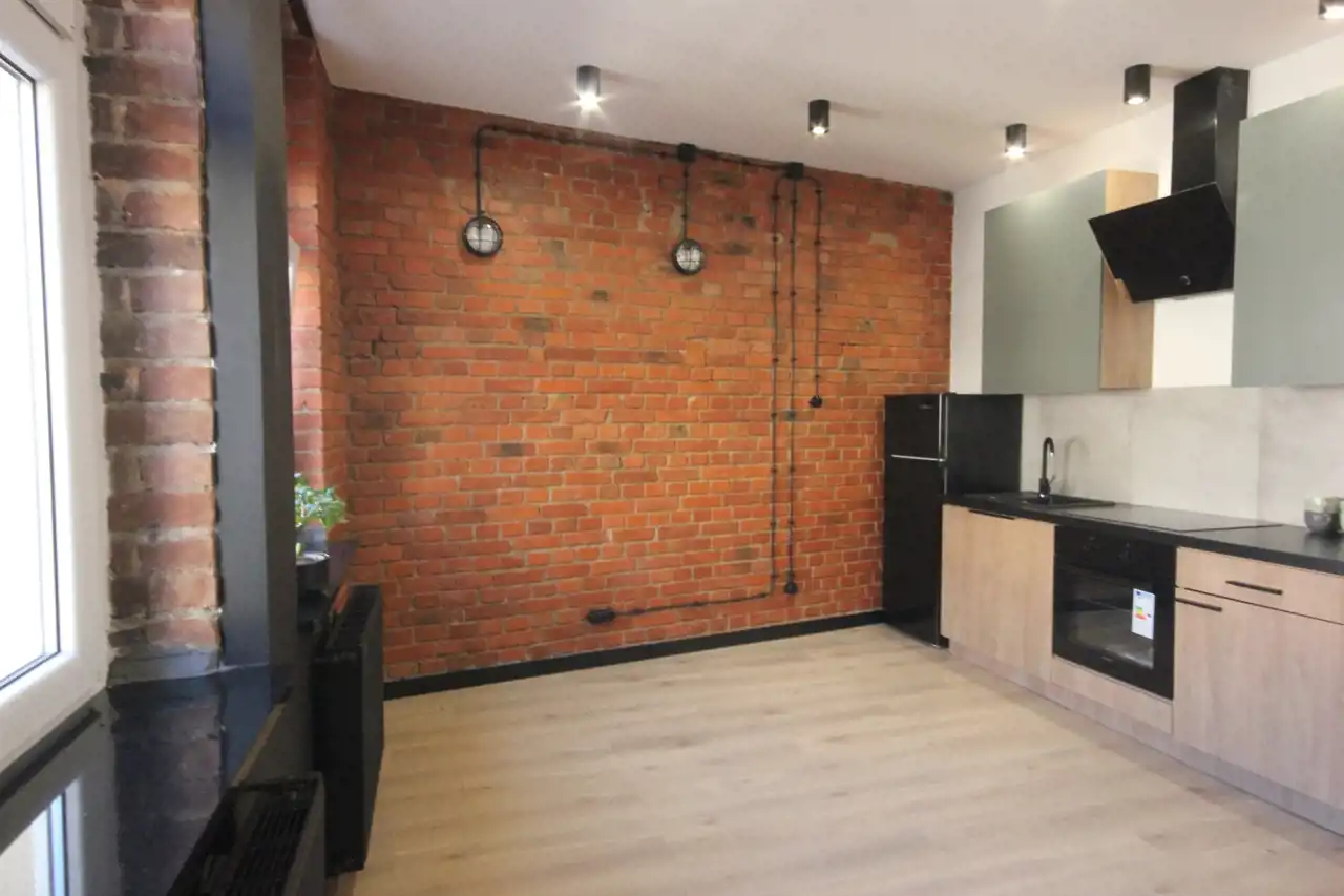 Oba mieszkania są nowo wykończone z najwyższą starannością. Wymieniono instalację elektryczną oraz hydrauliczną, zamontowano nową armaturę, a także nowe okna z kamiennymi parapetami. Wnętrza zostały gustownie zaaranżowane w stylu loftowym, doskonale wpisującym się w klimat przedwojennej kamienicy. Nowoczesna zabudowa kuchenna wyposażona w sprzęt AGD, a także piękne łazienki z pralką, sprawiają, że mieszkania są gotowe do zamieszkania.