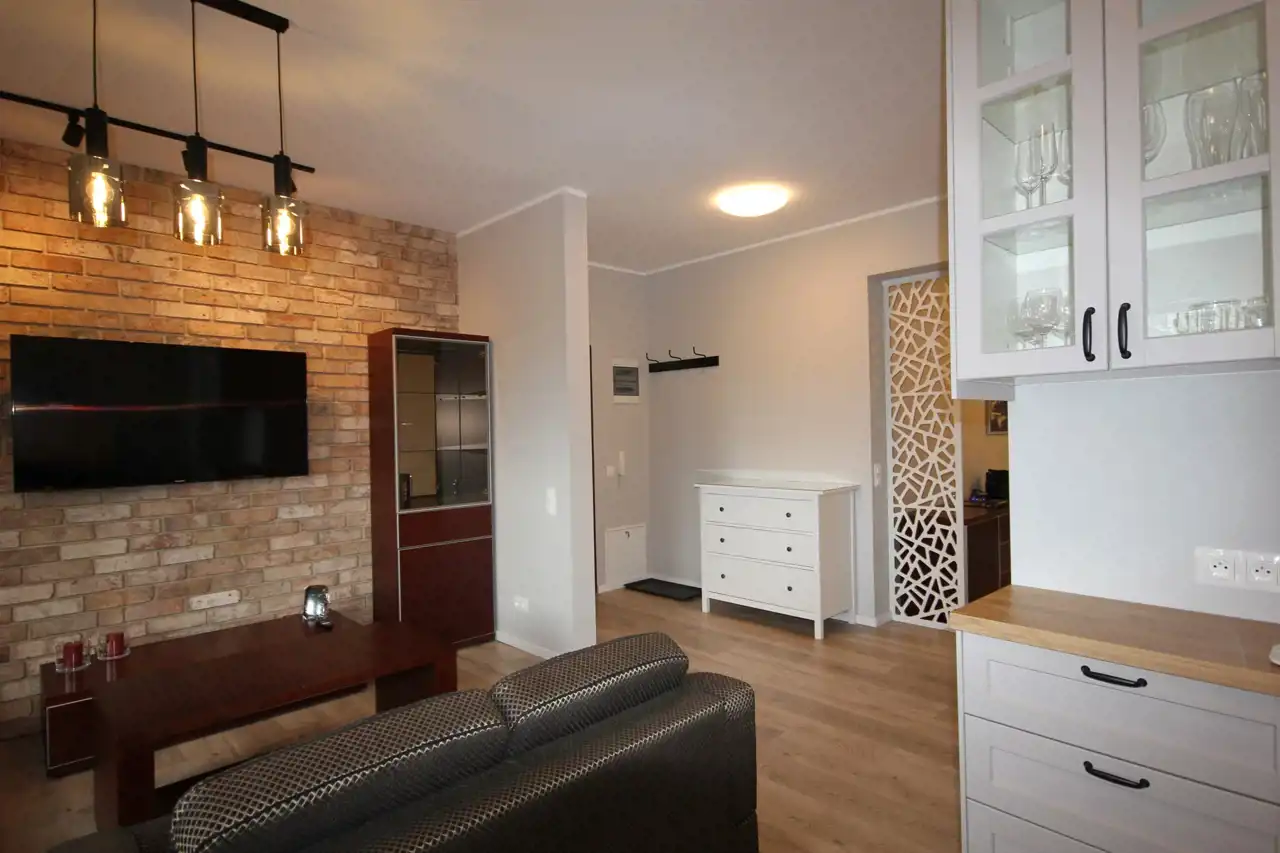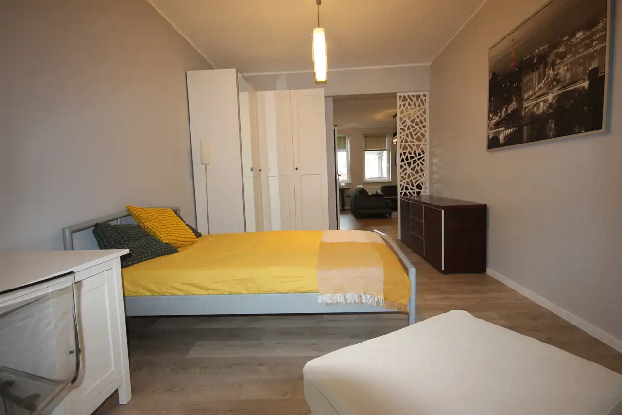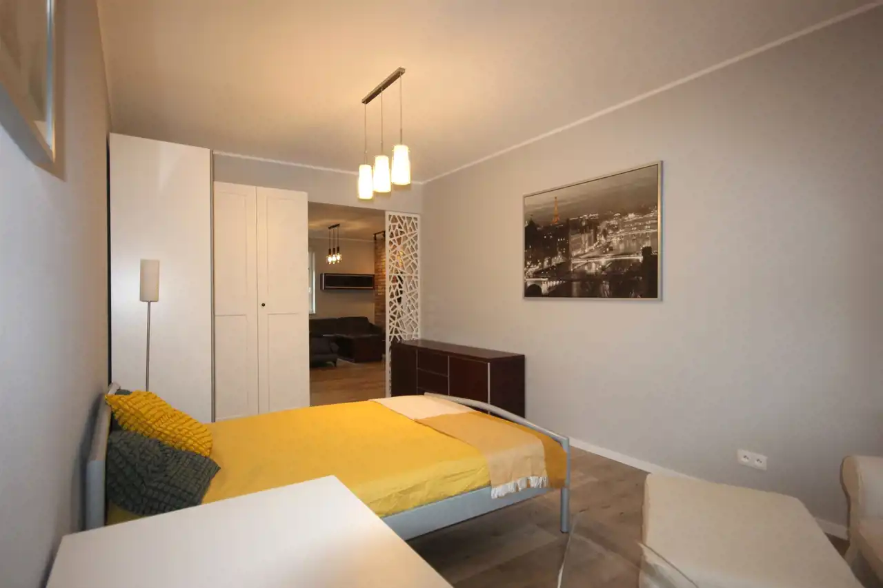 Na sprzedaż dwupokojowe, przestronne mieszkanie z otwartą kuchnią, dużą sypialnią z balkonem.