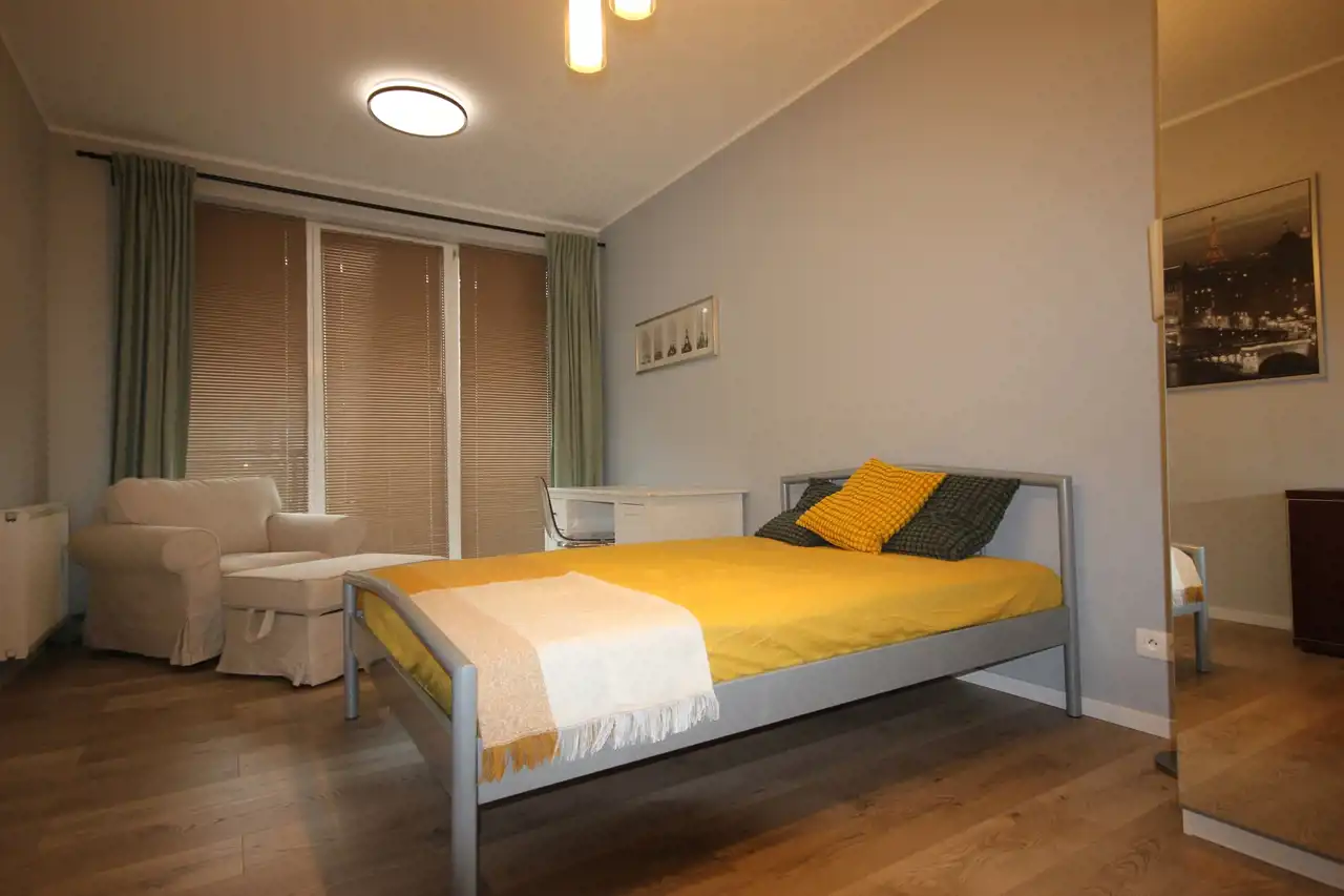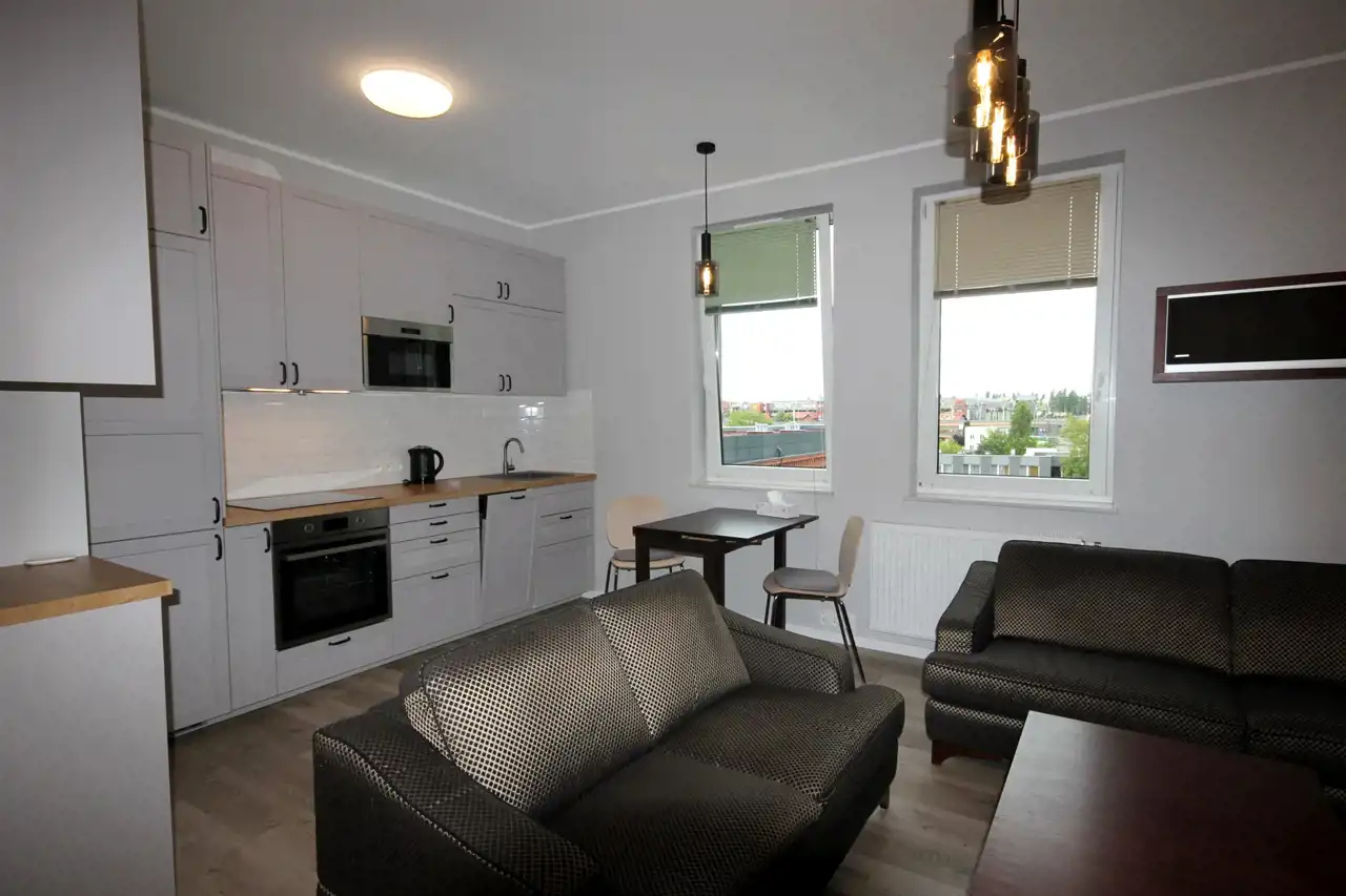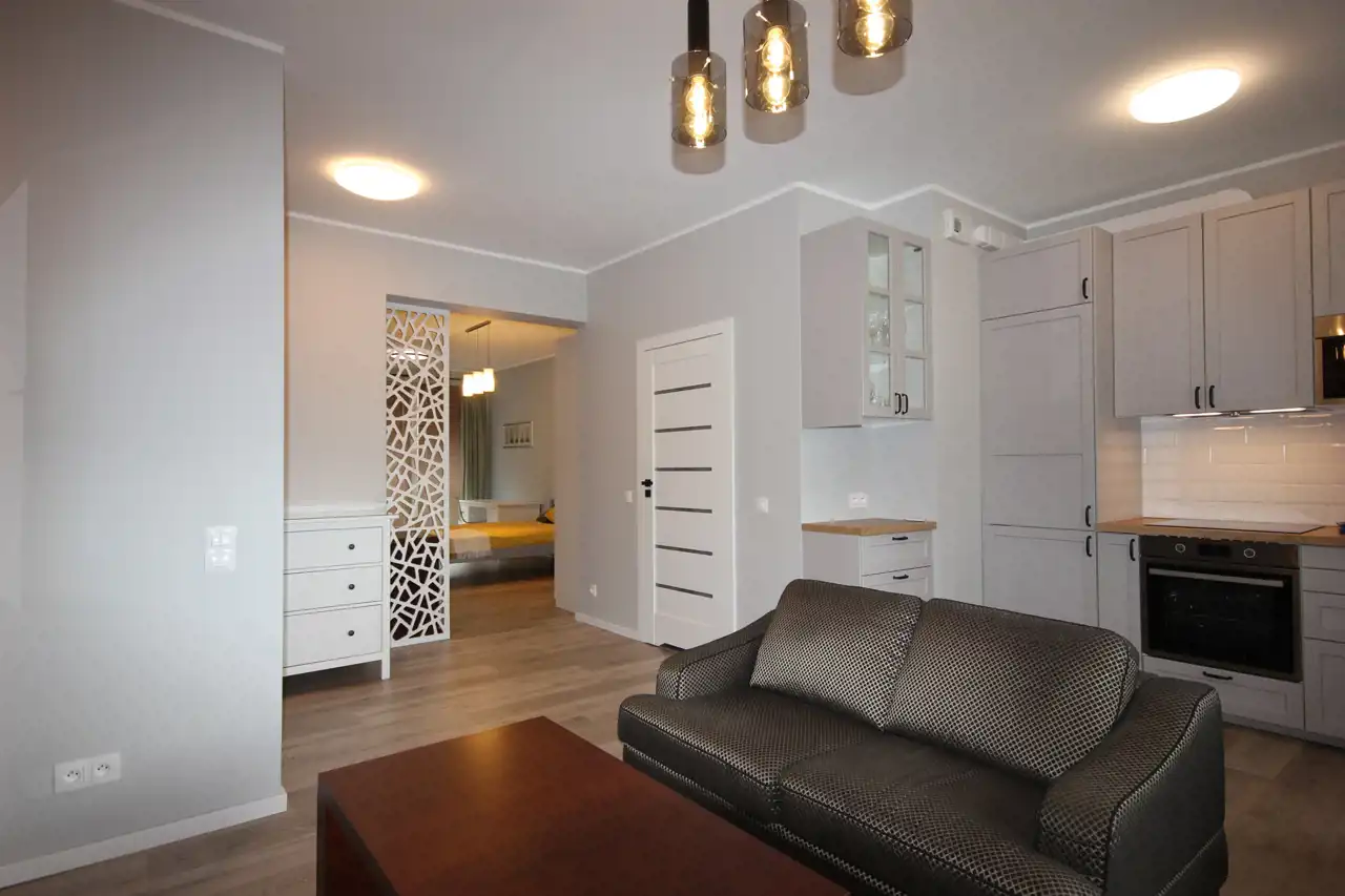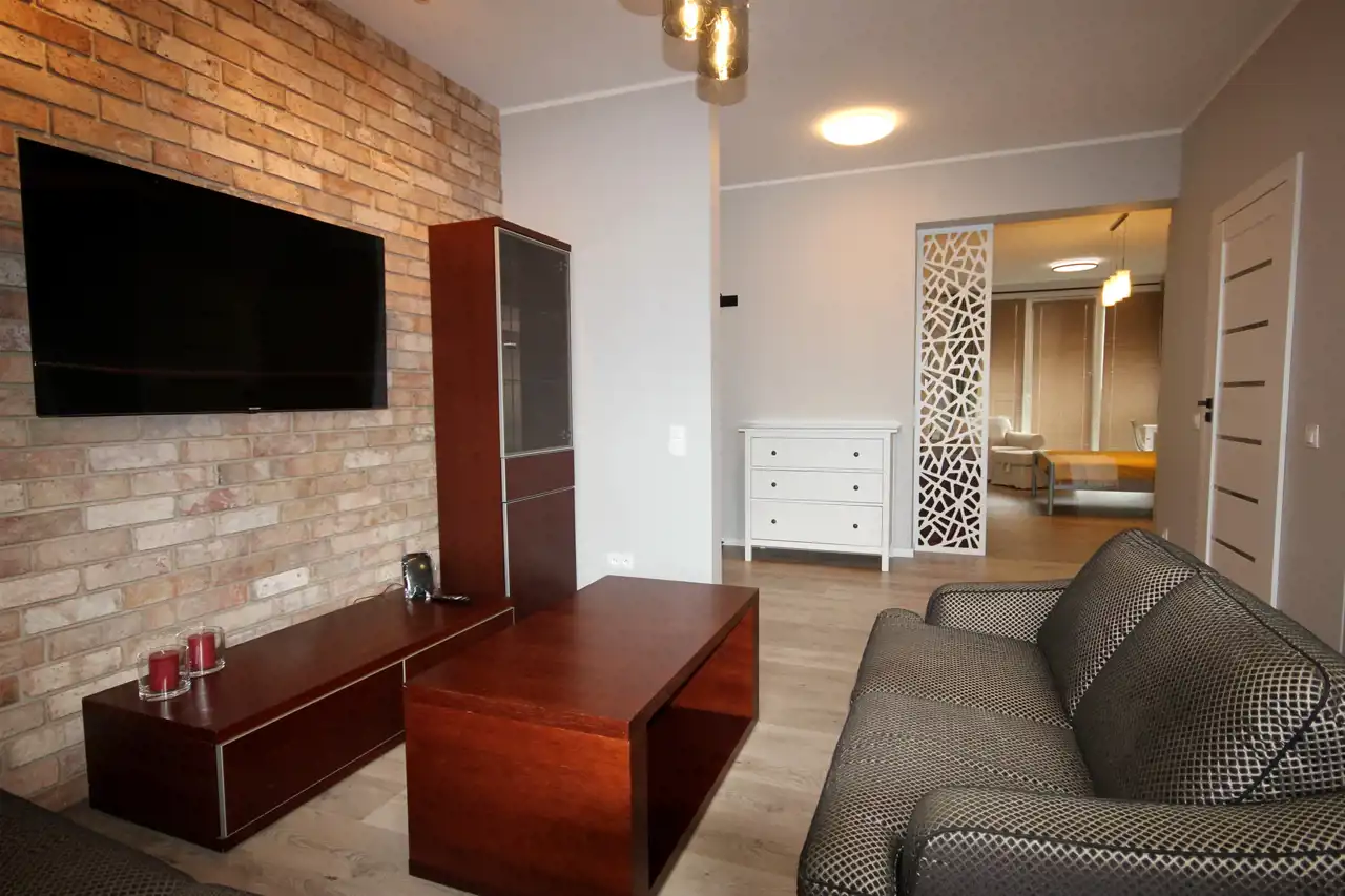 Na sprzedaż dwupokojowe, przestronne mieszkanie z otwartą kuchnią, dużą sypialnią z balkonem.