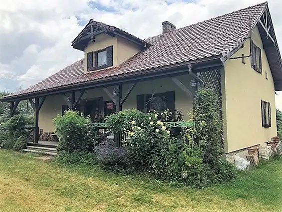 Dom został wybudowany z wykorzystaniem części starszego budynku. Ściany zewnętrzne i wewnętrzne z porotermu z izolacją styropianem, od dachu wełną mineralną. Dach kryty dachówką ceramiczną szkliwioną. Przy domu jest piwniczka-pomieszczenie gospodarcze o powierzchni 9m2. Praktycznie dom nie podpiwniczony, bardzo dobrze izolowany przeciwwilgociowo i termicznie od podłoża.