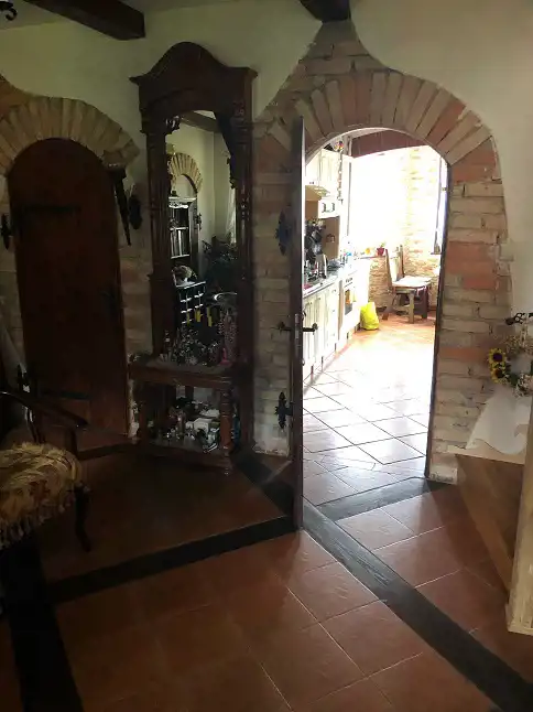 Podłogi są z gresu (hol, kuchnia), terakoty (łazienka), deski podłogowej salon. Ściany gładzone i malowane, w holu w części z ozdobną cegłą, w łazience, glazura, w kuchni częściowo sztukateria. Drzwi wewnętrzne oryginalne drewniane robione pod indywidualny projekt.. Okna częściowo z okiennicami. Ogród z wieloma nasadzeniami w koło domu. Część działki tylko w trawniku. Działka płaska, ogrodzona. Przy granicy działki są tereny leśne, w pobliżu jezioro.