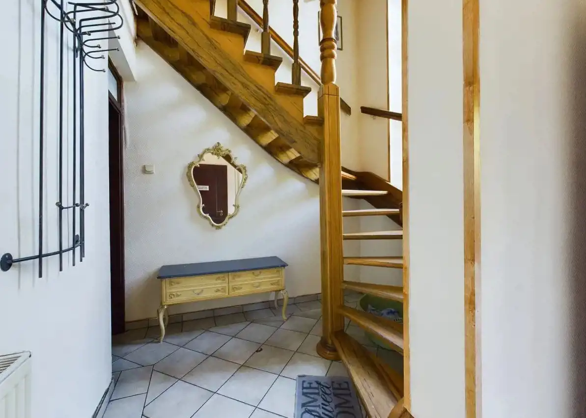 Podłogi w łazienkach i holach z terakoty, w pokojach wykładziny dywanowe (do ewentualnej wymiany). Okna drewniane mahoniowe.