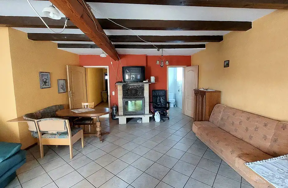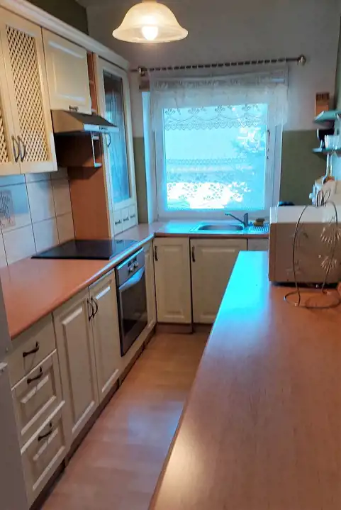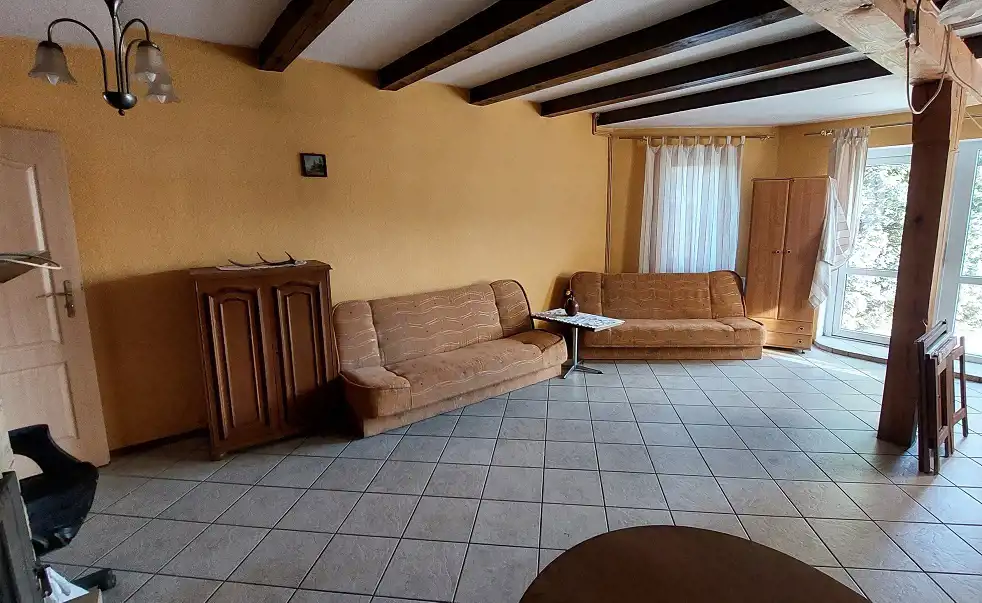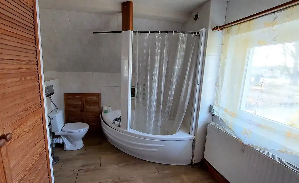 Ogrzewanie i ciepła woda z pieca dwuobiegowego gazowego, dodatkowo kominek w salonie. Budynek był wynajmowany dla wczasowiczów .