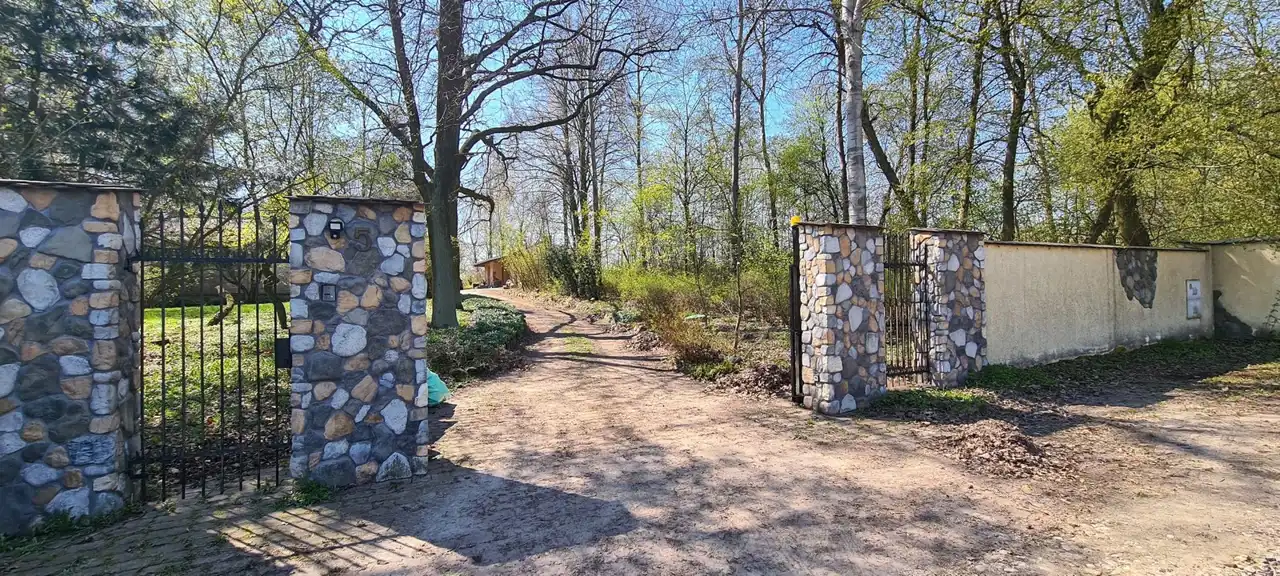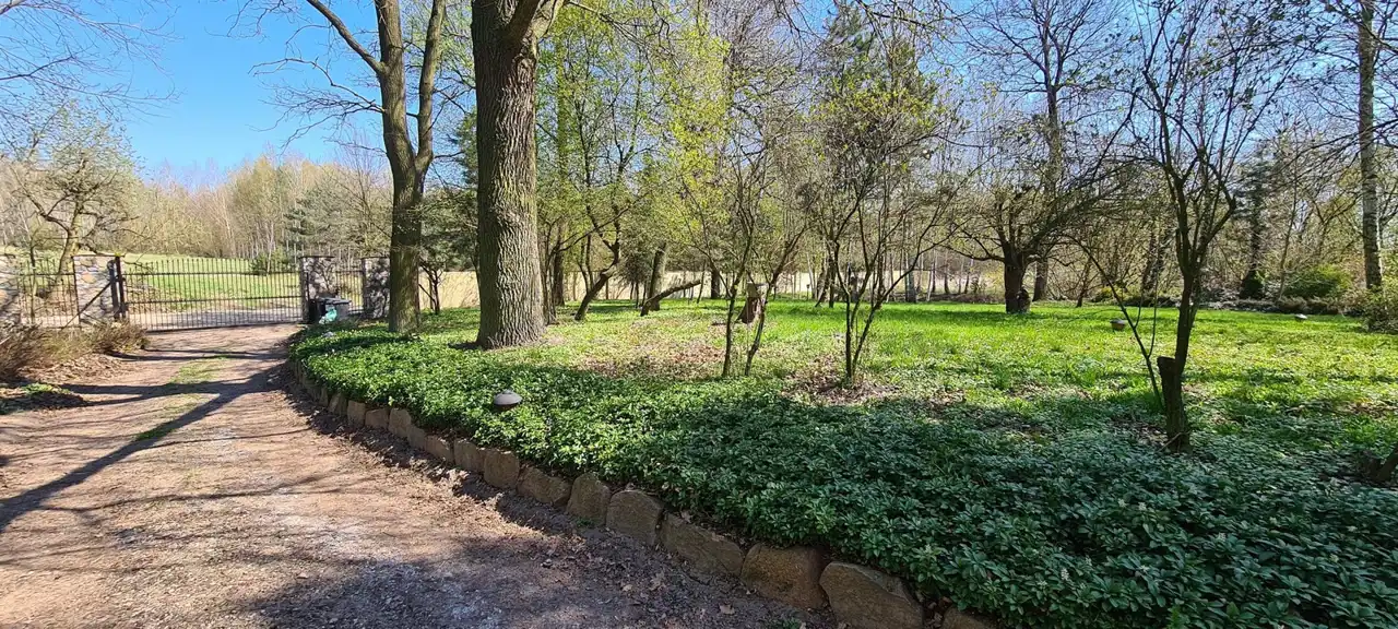 Wokół budynku mieszkalnego rozciąga się przepiękny, dziewiczy ogród z olbrzymim stawem, alejami, strumykami, starymi nasadzeniami.