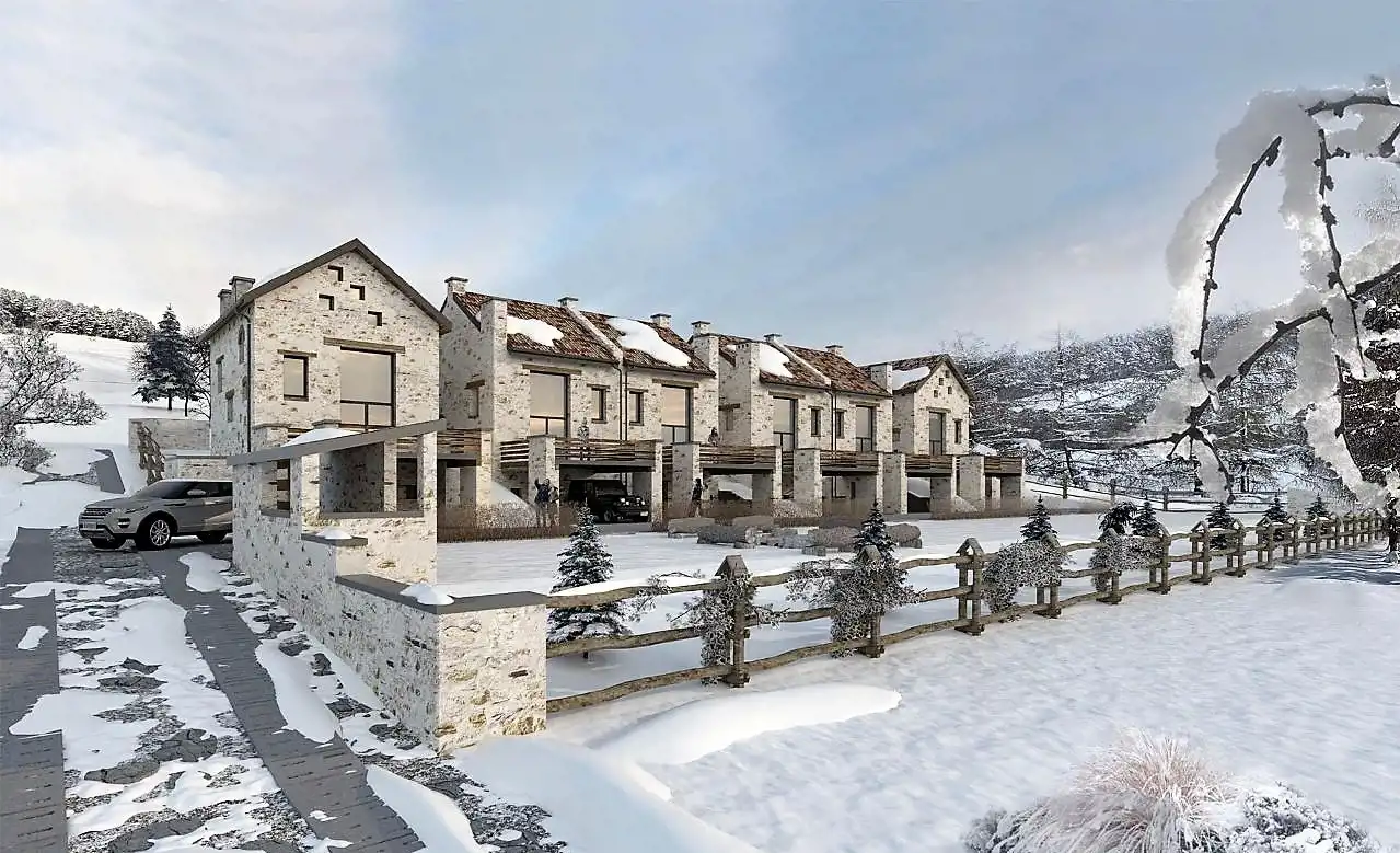 Forma architektoniczna projektowanych budynków przypomina górskie wille z północy Włoch a ich układ przestrzenny wykorzystuje maksymalnie walory krajobrazowe i widokowe, które stworzyła natura. Do niej nawiązujemy zastosowanymi materiałami: kamień, beton, aluminium, drewno.