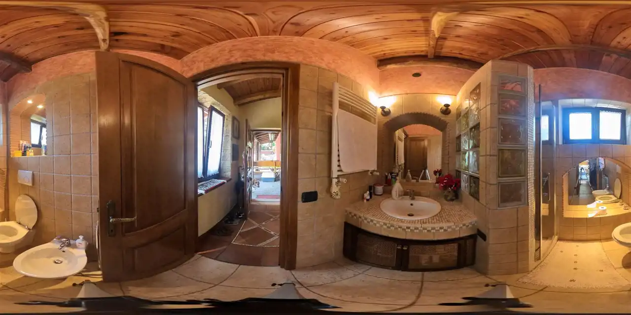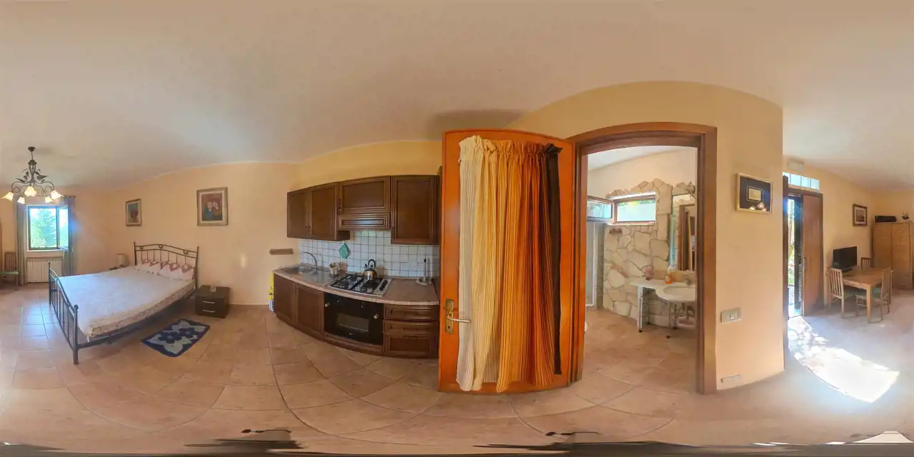 Pietro: duży pokój-sypialnia, łazienka z wanną i prysznicem -wszystko niezwykle starannie wykończone w granicie, drewnie i mozaice. Duży balkon i taras widokowy zapewniający fenomenalne doznania widokowe.