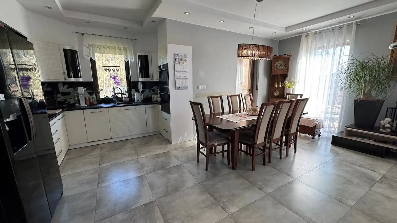 - Przestronny salon z aneksem – idealne miejsce na rodzinne spotkania
