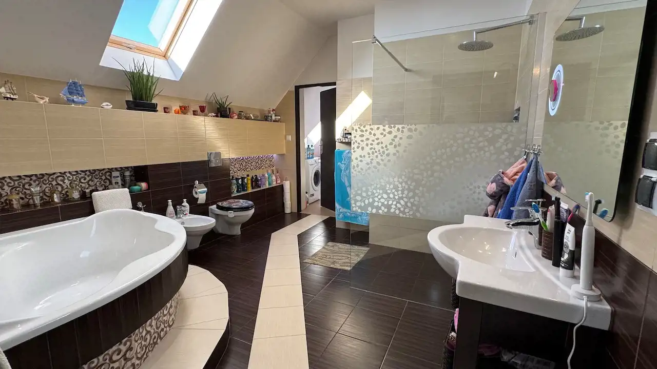 - Strych 35 m² – dodatkowa przestrzeń na przechowywanie