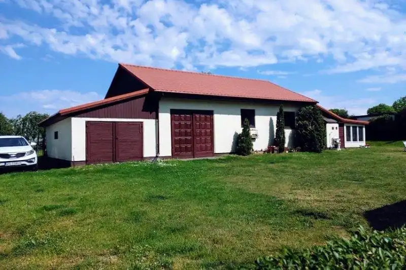 Na działce dodatkowo jest budynek gospodarczy/stodoła/garaż z kuchnią letnią około 140m2 oraz szklarnia. W części ogrodu jest zadbany stary sad. Budynek dobrze wyposażony, w bardzo dobrym stanie wykończenia. W skład domu wchodzi 5 pokoi, 2 łazienki, 2 toalety, kuchnia na parterze oraz użytkowym poddaszu. Dach pokryty dachówką, nowa elewacja.