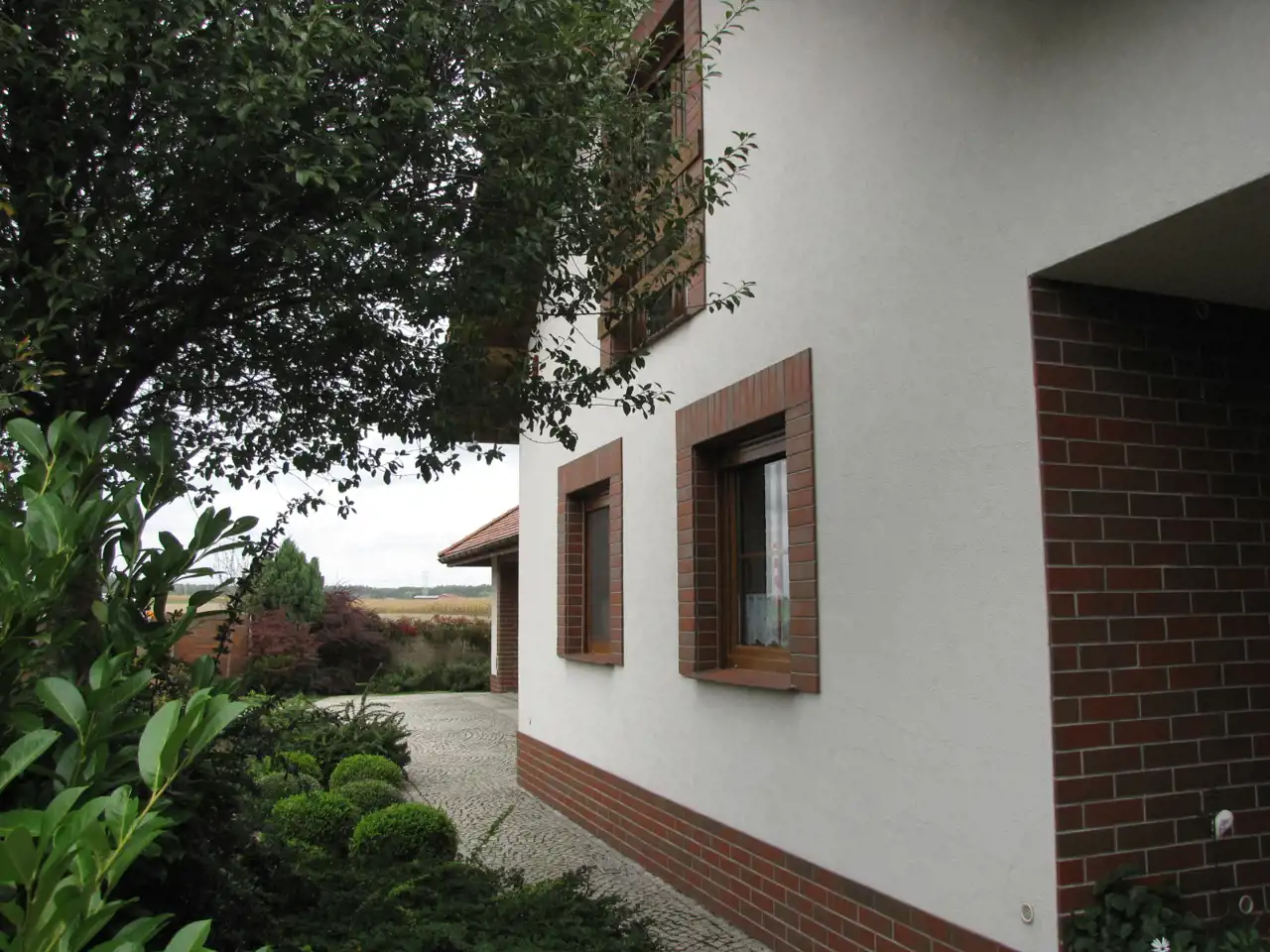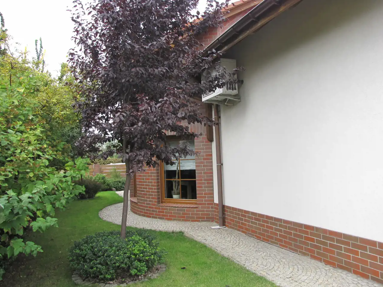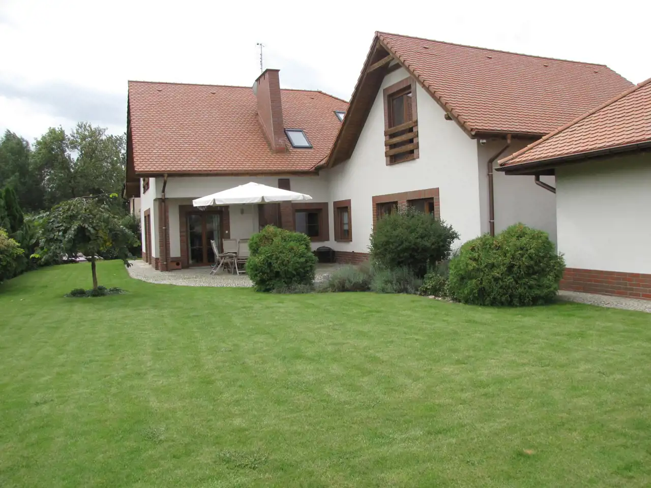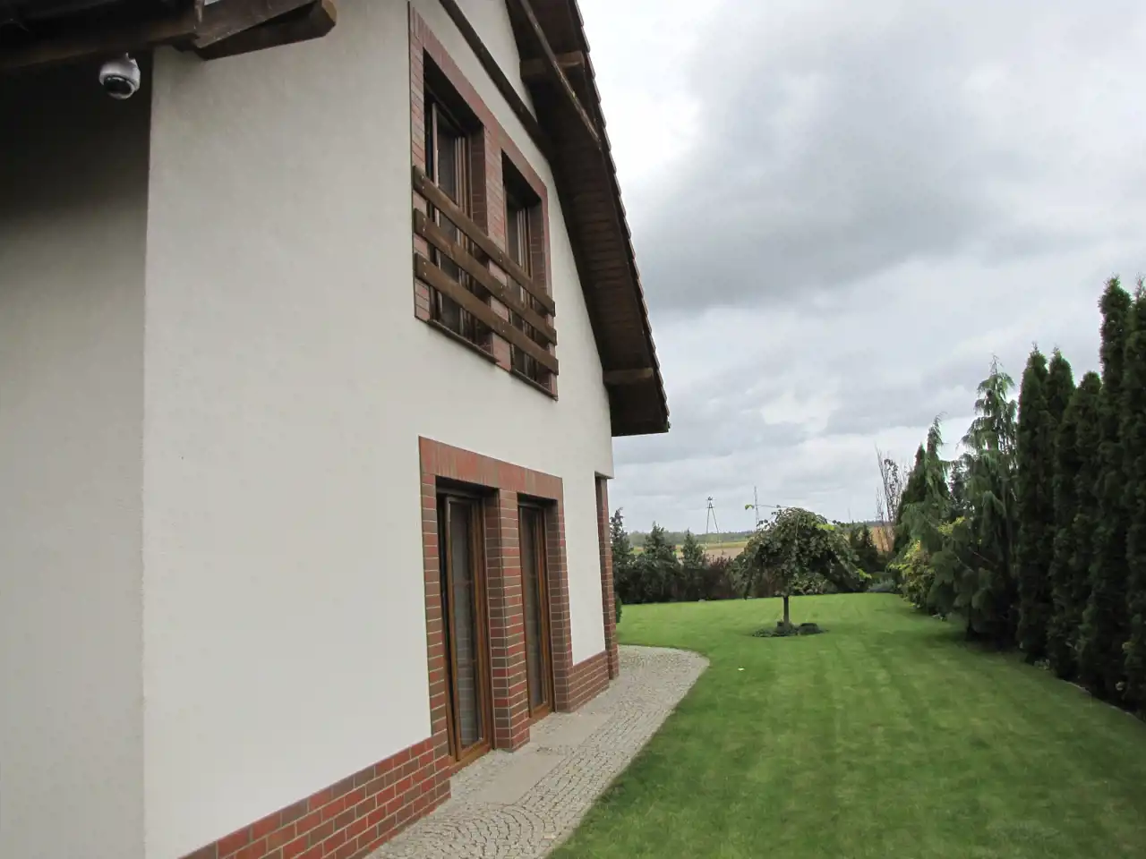 Drugi dom (120,35 m.kw) składa się z widnego salony z kuchnią w aneksie (46,80 m.kw) i łazienki o pow 8,05 m.kw. Na piętrze znajduje się sypialnia z garderobą o pow 46,80 m.kw. Dom wykończony został materiałami o najwyższej jakości, w całym domu na podłogach położony jest parkiet egzotyczny, meble z drewna egzotycznego, kuchnie w pełni umeblowane wraz ze sprzętem agd firmy Bosh. Filtr i zmiękczacz wody. Na piętrze w każdej sypialni zamontowana jest klimatyzacja, zbudowany w 2008 r z pustaka ceramicznego, docieplony 12 cm wełną mineralną. Dach wykończony dachówką ceramiczną, okna pcv z roletami antywłamaniowymi i pięknym tarasem ok 40 m.kw, ogrzewanie podłogowe gazowe, piecyk kondensacyjny VAILLANT z zasobnikiem 150l. Pięknie zagospodarowany ogród na działce o pow 900 m.kw z automatycznym nawadnianiem. Ogrodzenie - klinkier firmy ROBEN z drewnem oraz siatką ocynkowaną. Brama wjazdowa automatyczna. Podjazd i taras z kostki granitowej. Alarm z monitoringiem. Podwójny garaż wolnostojący z bramą elektryczną. Dom idealny dla dwóch rodzin i osób ceniących ciszę oraz kontakt z naturą. Świetna lokalizacja, dojazd do rynku zajmuje 15 minut. Bezpośredni zjazd na autostradową obwodnicę Wrocławia oraz do trasy S-5 Wrocław- Poznań i S-8 łączącą Gdańsk, Łódź, Warszawę oraz A4 w kierunku Śląska i Krakowa.