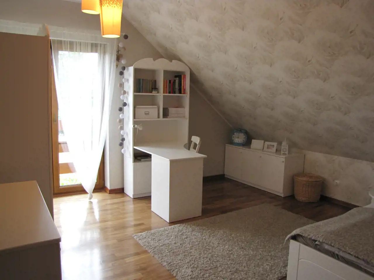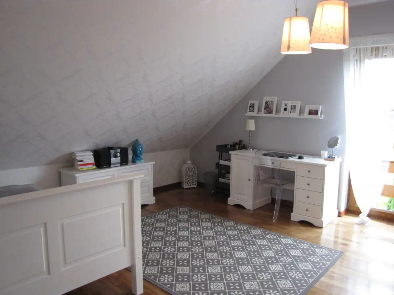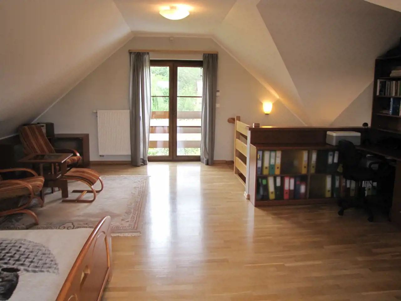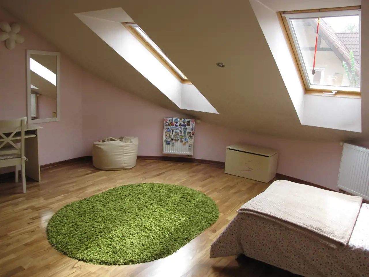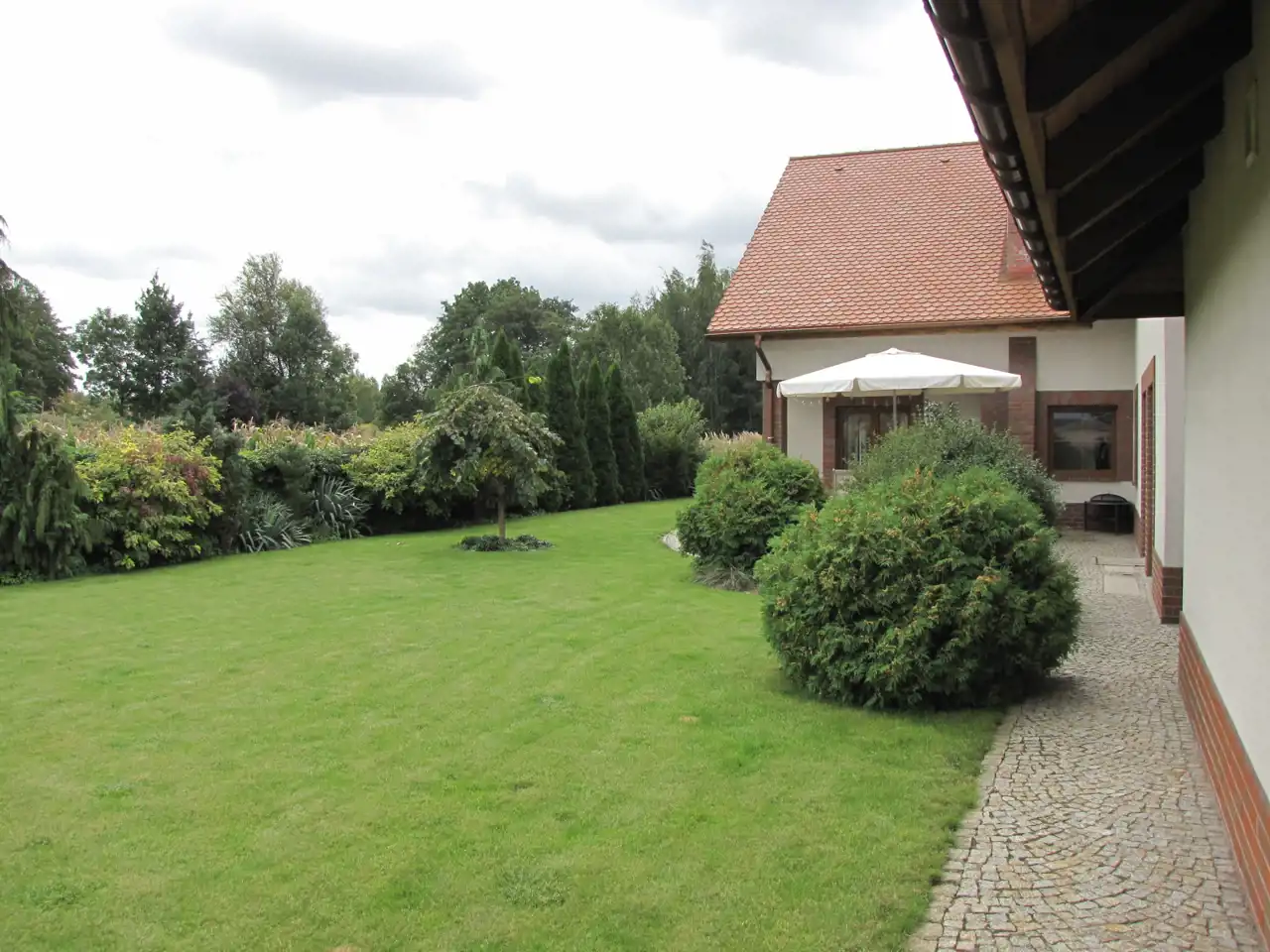 Drugi dom (120,35 m.kw) składa się z widnego salony z kuchnią w aneksie (46,80 m.kw) i łazienki o pow 8,05 m.kw. Na piętrze znajduje się sypialnia z garderobą o pow 46,80 m.kw. Dom wykończony został materiałami o najwyższej jakości, w całym domu na podłogach położony jest parkiet egzotyczny, meble z drewna egzotycznego, kuchnie w pełni umeblowane wraz ze sprzętem agd firmy Bosh. Filtr i zmiękczacz wody. Na piętrze w każdej sypialni zamontowana jest klimatyzacja, zbudowany w 2008 r z pustaka ceramicznego, docieplony 12 cm wełną mineralną. Dach wykończony dachówką ceramiczną, okna pcv z roletami antywłamaniowymi i pięknym tarasem ok 40 m.kw, ogrzewanie podłogowe gazowe, piecyk kondensacyjny VAILLANT z zasobnikiem 150l. Pięknie zagospodarowany ogród na działce o pow 900 m.kw z automatycznym nawadnianiem. Ogrodzenie - klinkier firmy ROBEN z drewnem oraz siatką ocynkowaną. Brama wjazdowa automatyczna. Podjazd i taras z kostki granitowej. Alarm z monitoringiem. Podwójny garaż wolnostojący z bramą elektryczną. Dom idealny dla dwóch rodzin i osób ceniących ciszę oraz kontakt z naturą. Świetna lokalizacja, dojazd do rynku zajmuje 15 minut. Bezpośredni zjazd na autostradową obwodnicę Wrocławia oraz do trasy S-5 Wrocław- Poznań i S-8 łączącą Gdańsk, Łódź, Warszawę oraz A4 w kierunku Śląska i Krakowa.