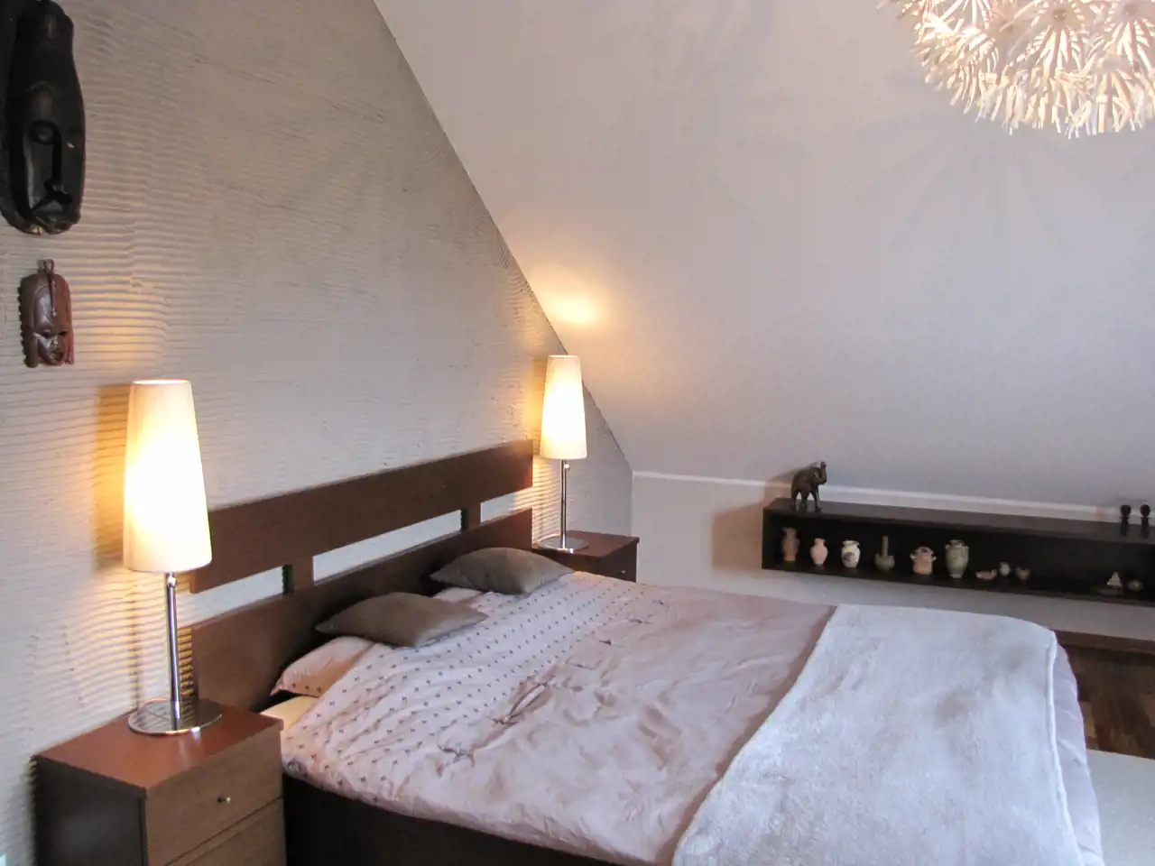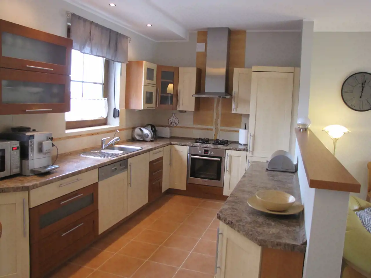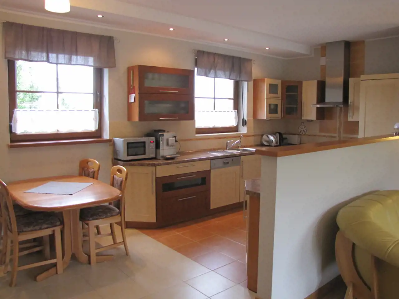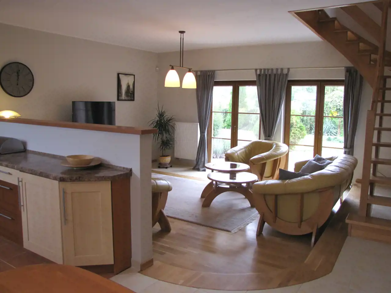 Drugi dom (120,35 m.kw) składa się z widnego salony z kuchnią w aneksie (46,80 m.kw) i łazienki o pow 8,05 m.kw. Na piętrze znajduje się sypialnia z garderobą o pow 46,80 m.kw. Dom wykończony został materiałami o najwyższej jakości, w całym domu na podłogach położony jest parkiet egzotyczny, meble z drewna egzotycznego, kuchnie w pełni umeblowane wraz ze sprzętem agd firmy Bosh. Filtr i zmiękczacz wody. Na piętrze w każdej sypialni zamontowana jest klimatyzacja, zbudowany w 2008 r z pustaka ceramicznego, docieplony 12 cm wełną mineralną. Dach wykończony dachówką ceramiczną, okna pcv z roletami antywłamaniowymi i pięknym tarasem ok 40 m.kw, ogrzewanie podłogowe gazowe, piecyk kondensacyjny VAILLANT z zasobnikiem 150l. Pięknie zagospodarowany ogród na działce o pow 900 m.kw z automatycznym nawadnianiem. Ogrodzenie - klinkier firmy ROBEN z drewnem oraz siatką ocynkowaną. Brama wjazdowa automatyczna. Podjazd i taras z kostki granitowej. Alarm z monitoringiem. Podwójny garaż wolnostojący z bramą elektryczną. Dom idealny dla dwóch rodzin i osób ceniących ciszę oraz kontakt z naturą. Świetna lokalizacja, dojazd do rynku zajmuje 15 minut. Bezpośredni zjazd na autostradową obwodnicę Wrocławia oraz do trasy S-5 Wrocław- Poznań i S-8 łączącą Gdańsk, Łódź, Warszawę oraz A4 w kierunku Śląska i Krakowa.