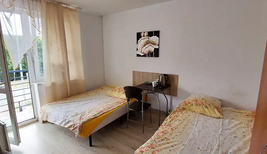 W sąsiedztwie ogrody działkowe, domy mieszkalne i pensjonatowe. Do plaży około 500m.