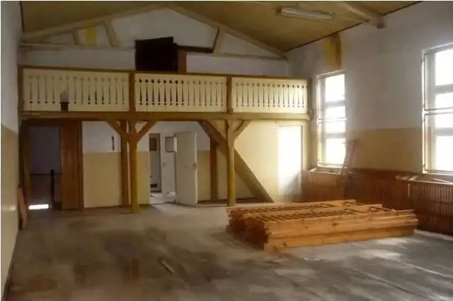 Obiekt stanowiący byłą salę gimnastyczną o powierzchni 131,7m2 w budynku, który w pozostałej części jest mieszkalny, z cegły, przedwojenny. Lokal jest nad piwnicą (wysoki parter). Okna stare z wystawą na wschód i zachód. Podłoga z desek. W lokalu jest WC z sedesem i umywalką oraz szatnia. Lokal można przebudować na mieszkania lub użytkować gospodarczo nieuciążliwie. Dostępne media to prąd, woda, kanalizacja. Z obiektem związany jest udział w gruncie i częściach wspólnych 27/100. W pobliżu lasy i jeziora. Do Żabowa 3km, Pyrzyc 8km, Bielic 5km, Szczecina 30km, drogi S3 6km.