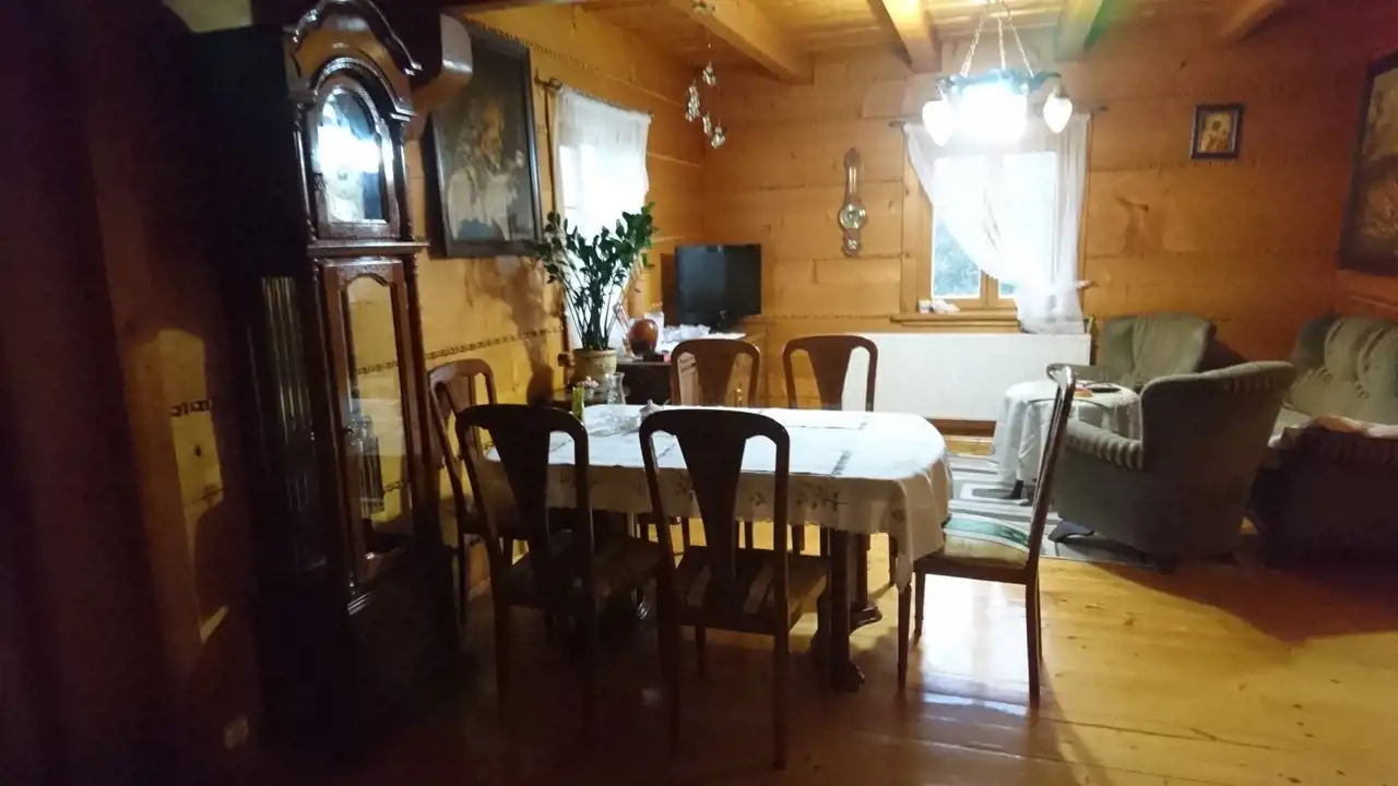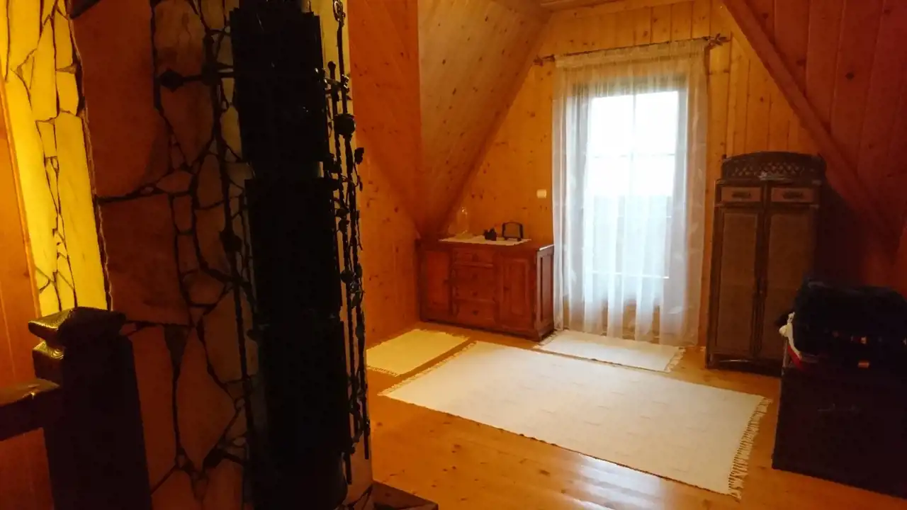 Opis: Sprzedam dom wolnostojący o powierzchni użytkowej 140 m. kw. usytuowany na dużej działce o powierzchni 41 565 m.kw. w okolicach Trzebnicy. Parter domu zbudowanego z drewna - jodły górskiej, składa się z salonu o pow. 30 m.kw., kuchni z o pow. 14 m.kw., pokoju o pow. 16 m.kw. i łazienki o pow. 9,8 m.kw. Piętro składa się z łazienki o pow. 10 m.kw., trzech pokoi o pow. 15 m.kw., 15 m.kw. i 10 m.kw. oraz korytarza. Okna drewniane z ekspozycją na wszystkie strony świata, przy czym wyjście z salonu na taras i ogród jest od strony południowo-zachodniej. Dach pokryty gontem drewnianym. Ogrzewanie elektryczne i kominkowe z rozprowadzeniem na c.o. i ogrzewanie wody, woda dodatkowo podgrzewana z solarów. Na podłogach położone są drewno i gres. Działka ogrodzona i zagospodarowana. Dodatkowo w ogrodzie duży domek o pow. 100 m.kw, w którym znajduje się osobna kuchnia letnia, garaż i miejsce do składania drewna.