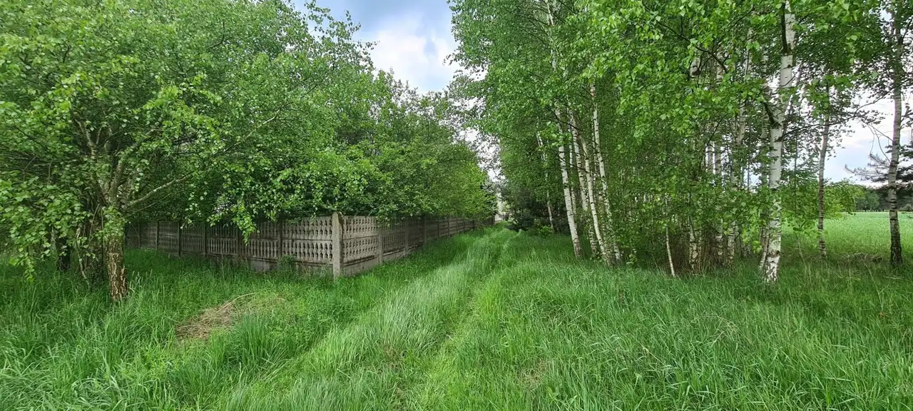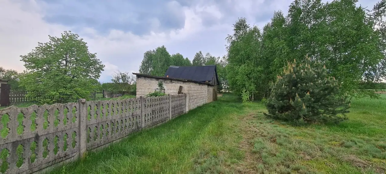 Działka o pow. 5700 m.kw, ogrodzona część mieszkalna. Kształt działki nieregularny. Jej najdłuższa część ma ok 213 metrów bieżących długości , zaś najkrótsza 113 metrów. Brama wjazdowa- metalowa z furtką. Piękne położenie wśród dziewiczej przyrody. Atutem jest również odległość od węzła s-8- 18 km.