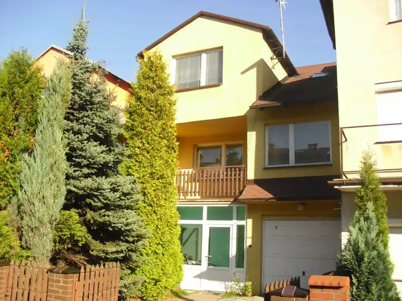 Funkcjonalny dom jedno lub dwurodzinny w zabudowie szeregowej o powierzchni użytkowej 200m2 posadowiony na działce o powierzchni 216m2 na Osiedlu Lotniczym. Budynek piętrowy z poddaszem użytkowym składający się z części przyziemnej, w skład której wchodzi: przestronny holl, pokój/gabinet z wyjściem do ogrodu, pomieszczenie gospodarcze z letnią kuchnią i kotłownią, WC z pralnią, komórka, garaż i wiatrołap. Na piętrze domu znajduje się: duży salon w kształcie litery L o powierzchni 32m2 z nastrojowym kominkiem i loggią; gabinet o powierzchni 15m2 z wyjściem na balkon, wyposażona, wygodna kuchnia z zabudową na wymiar (piec elektryczny z płytą ceramiczną) oraz łazienka z wanną. Poddasze zajmują: 3 rozkładowe sypialnie (w tym małżeńska) o powierzchni 13m2; 25m2; 9m2 oraz łazienka z kabiną prysznicową o powierzchni 3m2 i garderoba. Technologia budowy budynku: suporeks + docieplenie styropianem 12cm (część wschodnia budynku). Dach wielospadowy pokryty gontem bitumicznym. Stolarka okienna drewniana. Drzwi zewnętrzne antywłamaniowe. Stolarka drzwiowa wewnętrzna drewniana. Centralne ogrzewanie gazowe (piec dwufunkcyjny Viessmann) plus alternatywne ogrzewanie kominkowe. Ściany pokryte gładzią i tynkiem strukturalnym, podłogi wyłożone panelami i terakotą z systemem ogrzewania podłogowego w salonie, kuchni i przedpokoju na piętrze domu. Przestronna klatka schodowa ze schodami sosnowymi. Garaż w bryle budynku o powierzchni 18m2. Posesja ogrodzona, pięknie zagospodarowana zielenią, pełnej iglaków, krzewów ozdobnych i tuji oraz trawą. Budynek usytuowany w spokojnym i zacisznym sąsiedztwie.