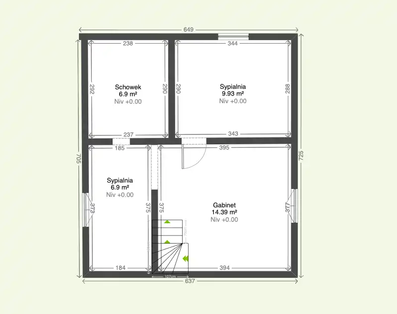 Poddasze stanowią dwie sypialnie oraz gabinet.