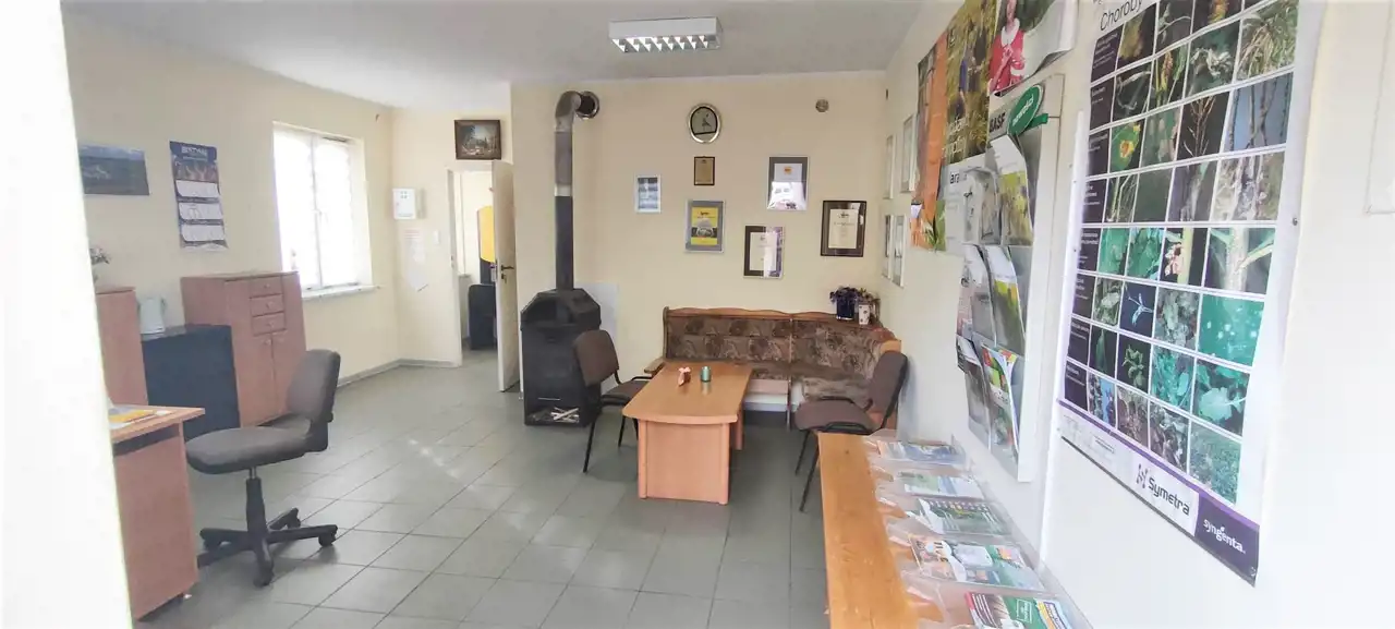 Budynek wykonany z cegły w bardzo dobrym stanie. Infrastruktura mediów: woda, energia elektryczna ( pełne oświetlenie magazynów i powierzchni biurowej), kanalizacja. Ogrzewanie kominkowe. Podłoga terakota. w części biurowej, która jest do użytkowania od zaraz. Możliwość podłączenia gazu.