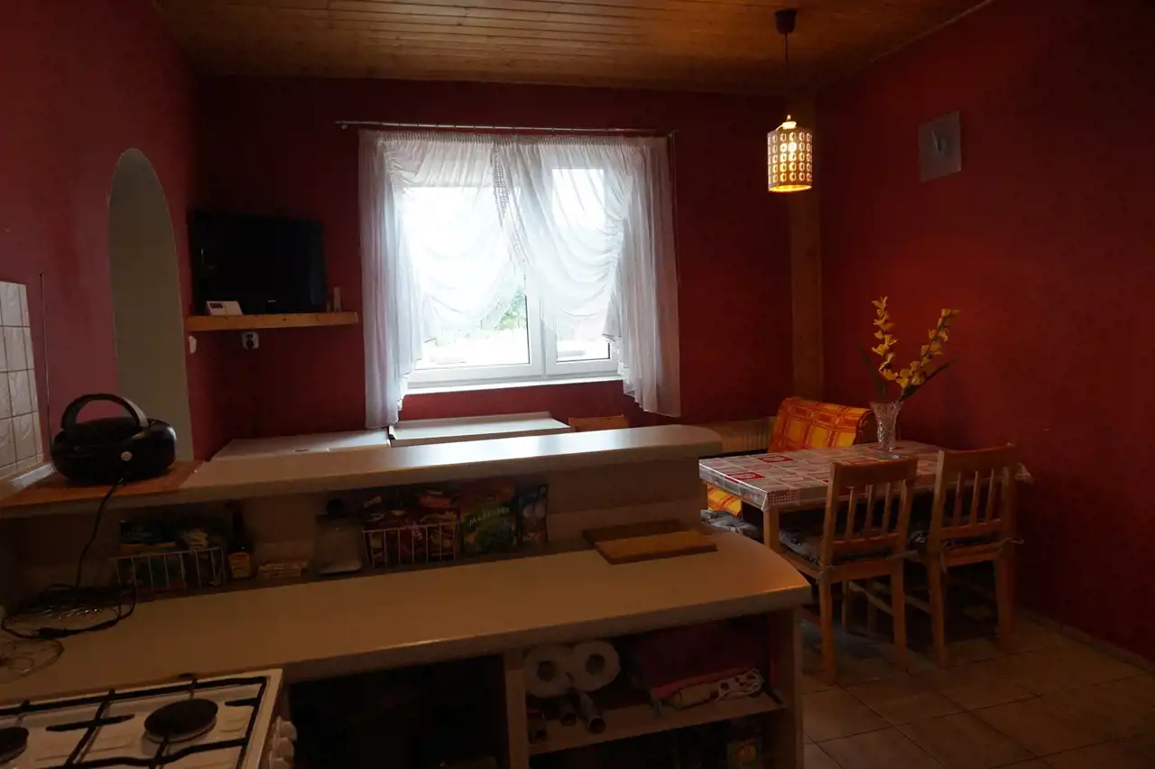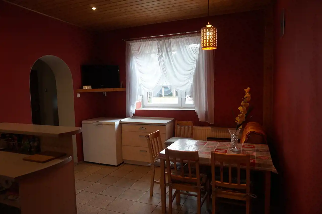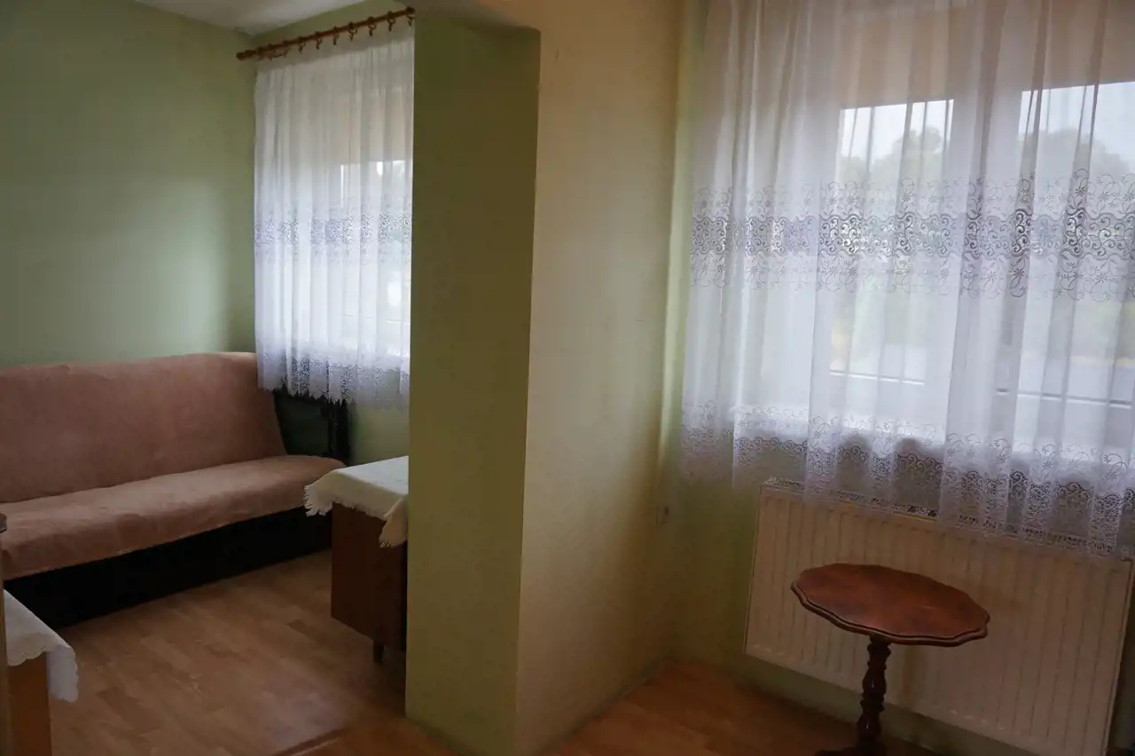 Dom ogrzewany za pomocą pieca na eko-groszek. Ciepła woda również z pieca na eko-groszek. Okna plastikowe.