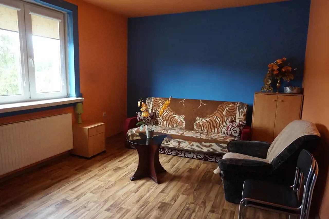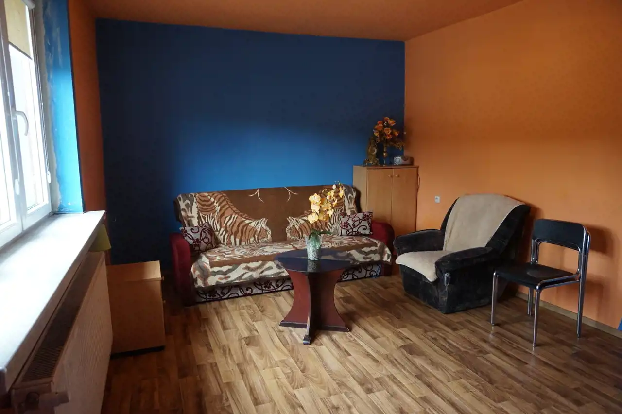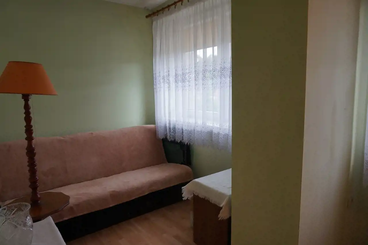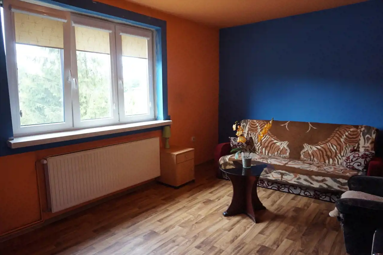 Dom ogrzewany za pomocą pieca na eko-groszek. Ciepła woda również z pieca na eko-groszek. Okna plastikowe.
