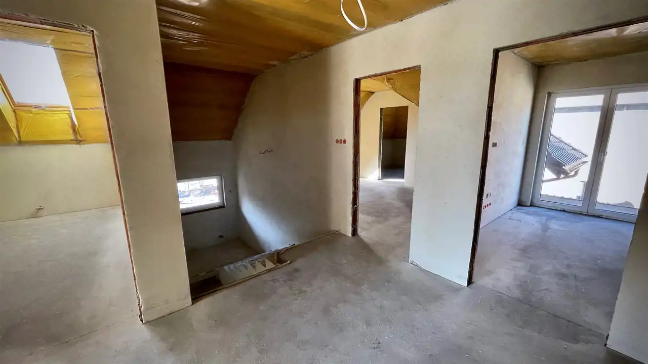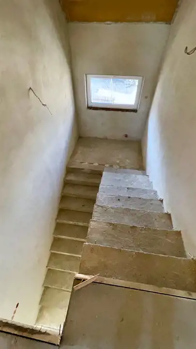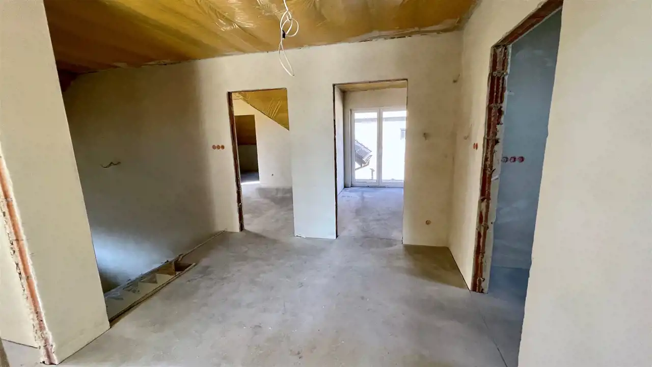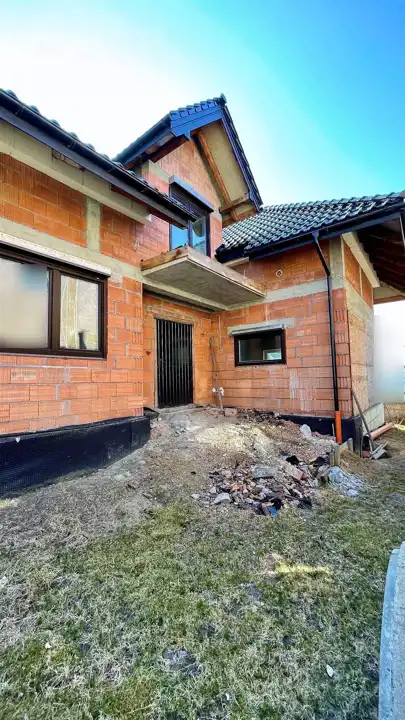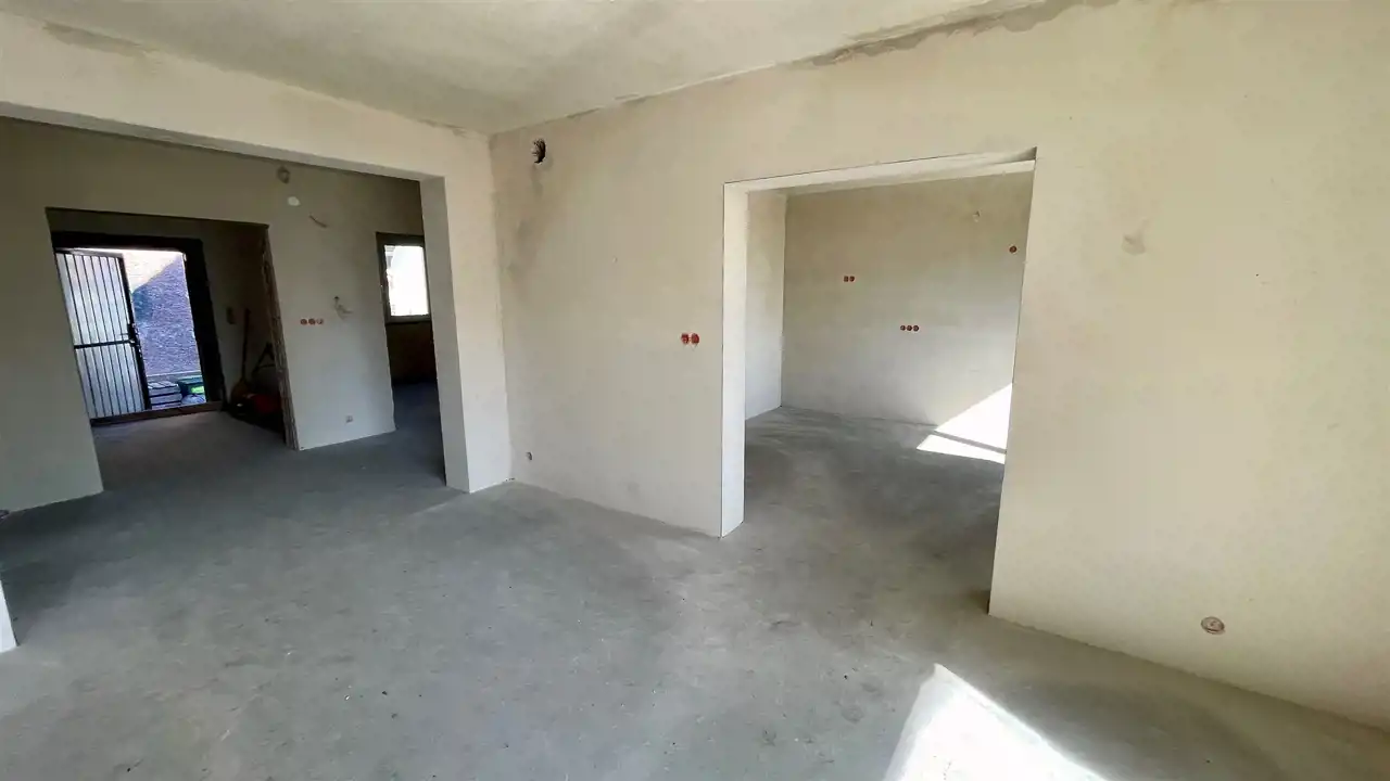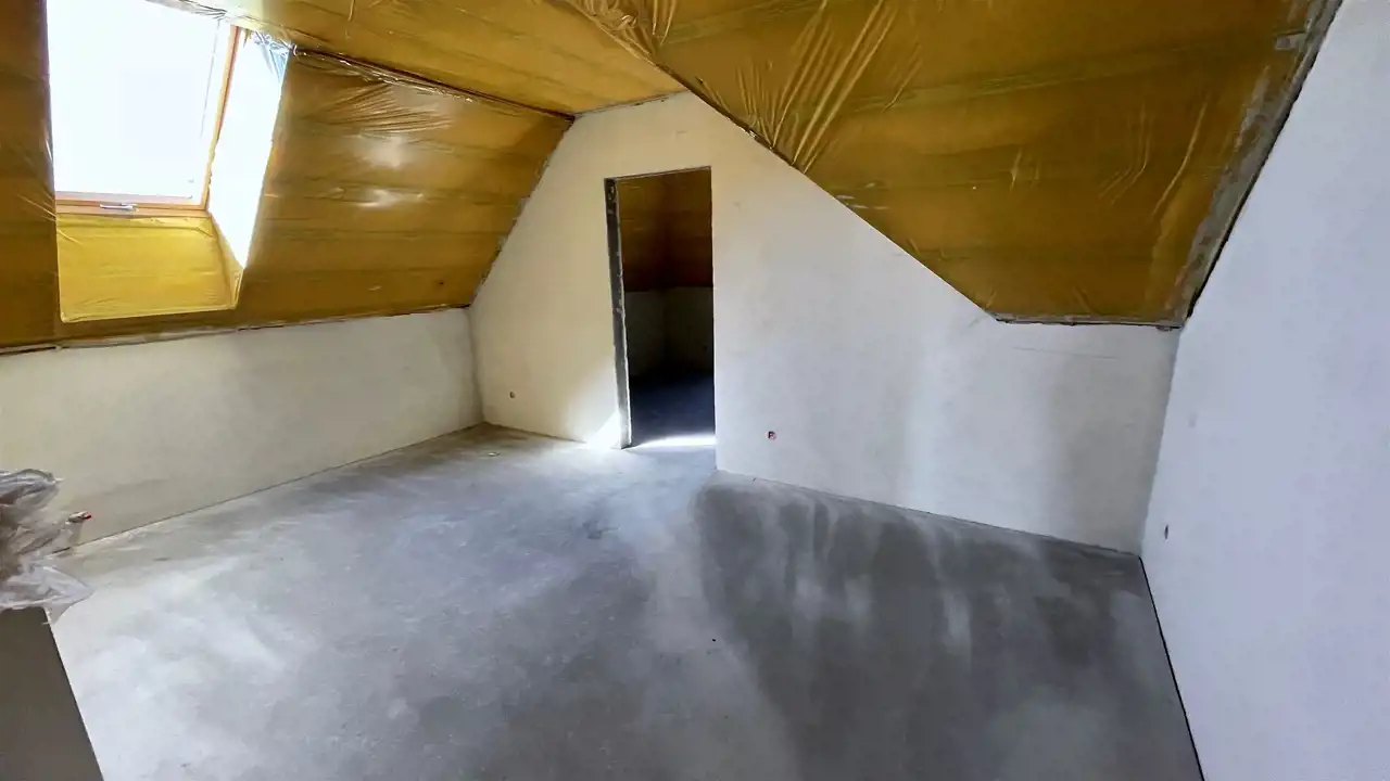W skład domu wchodzi: garaż ;duża piwnica (schron); salon dzienny; kuchnia; łazienka; 4- sypialnie; gabinet; pralnia; duża garderoba oraz strych do adaptacji ok 40m2. Dom jest w stanie deweloperskim zamkniętym do wykończenia o powierzchni użytkowej ok 240m2 - wyposażony w instalacje grzewcze ;elektryczne oraz wodne.Dom wyposażony jest w ogrzewanie podłogowe oraz dodatkowo przyłącza do kaloryferów naściennych. Na podłogach wylewki a na ścianach i sufitach tynk - na dachu dachówka ceramiczna wysokiej klasy - okna nowe z PCV.