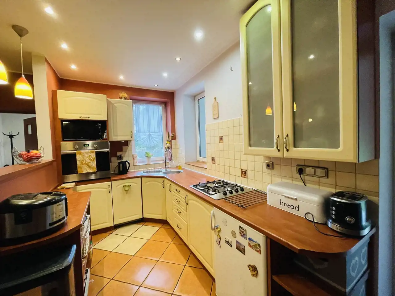 Ogrzewanie własne gazowe. Dodatkowo na parterze kominek.