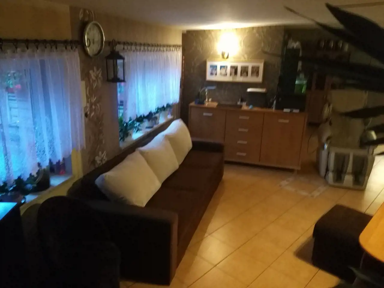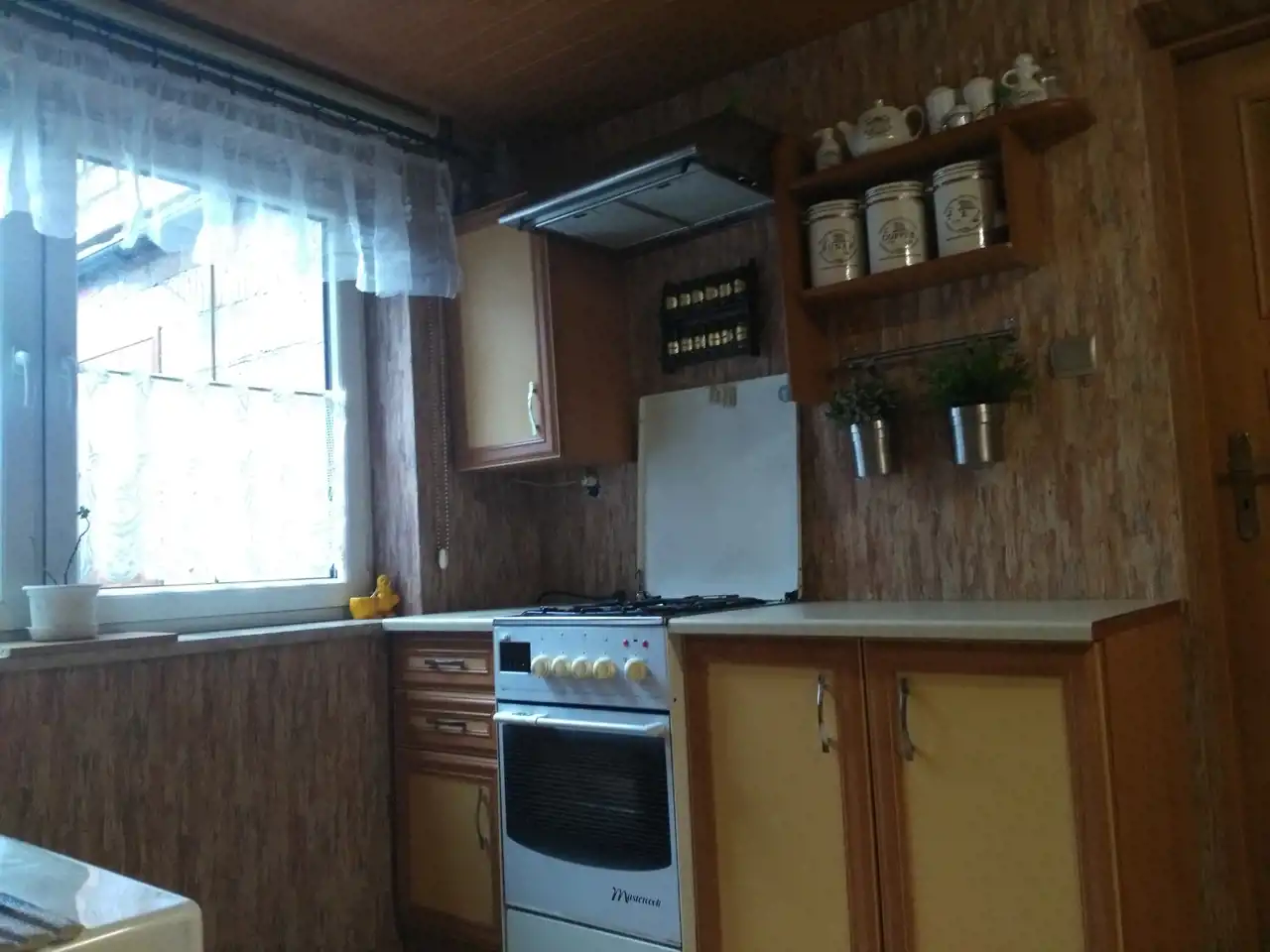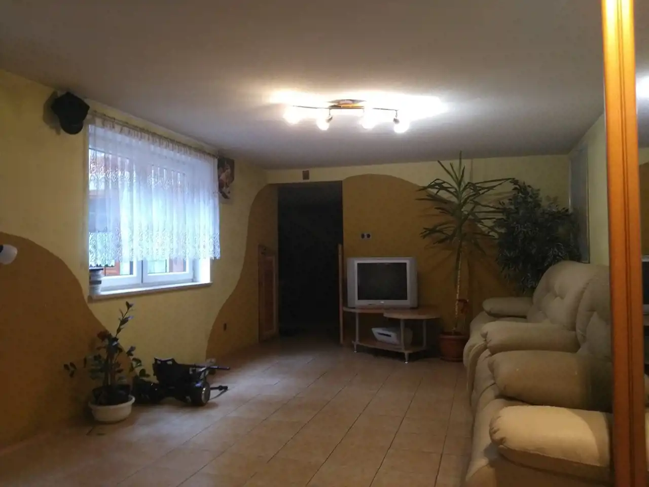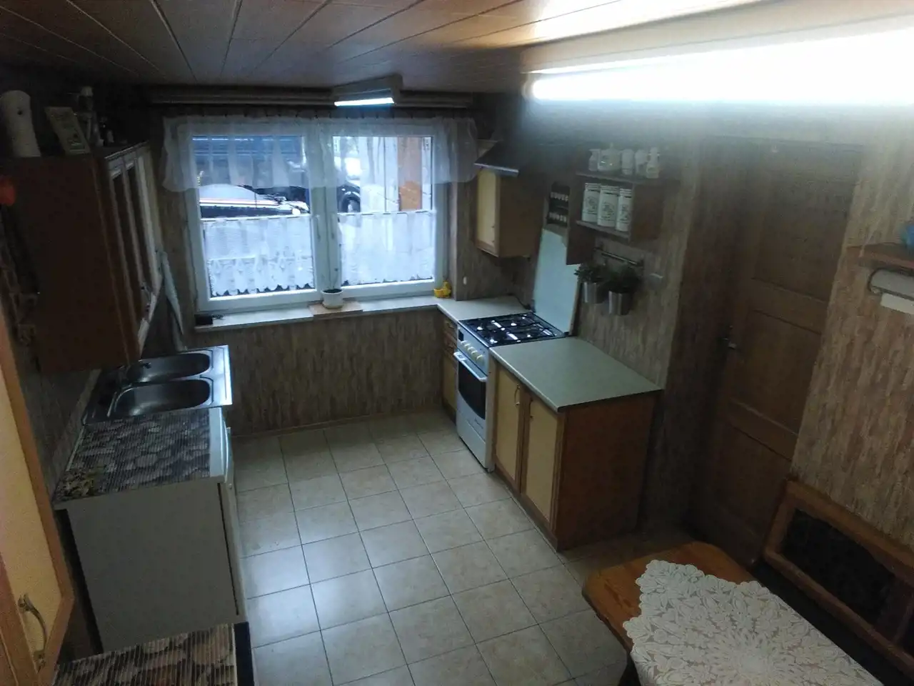 Drugi dom w zabudowie bliźniaczej z roku 1980 o powierzchni ok. 120 m.kw. Dom piętrowy z podpiwniczeniem, wybudowany z cegły ceramicznej, strop - płyta żelbetowa, dach w konstrukcji drewnianej, jednospadowy, pokryty papą. Okna pcv dobrej jakości w kolorze złoty dąb (dwa okna drewniane w piwnicy zostały niewymienione). W piwnicy wydzielone są dwa pomieszczenia: pokój ok. 17 m.kw, kotłownia ok. 20 m.kw, na piętrze znajdują się: salon o pow. ok. 20 m.kw, kuchnia ok. 15 m.kw oraz łazienka o pow. 2 m.kw, na piętra znajdują się dwa pokoje o pow. ok. 20 m.kw oraz 17 m.kw. Stan-domu do remontu.