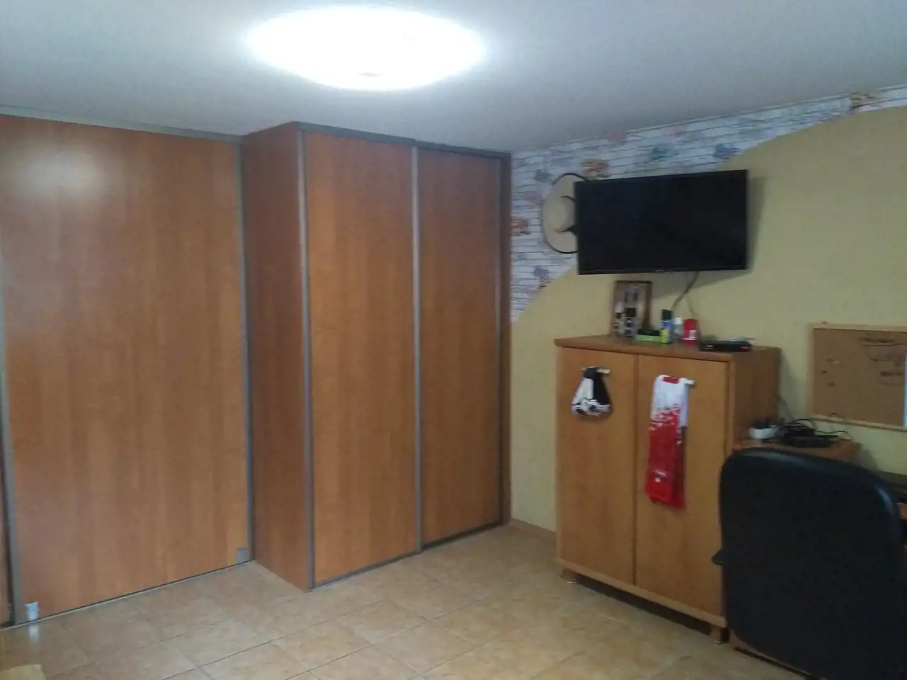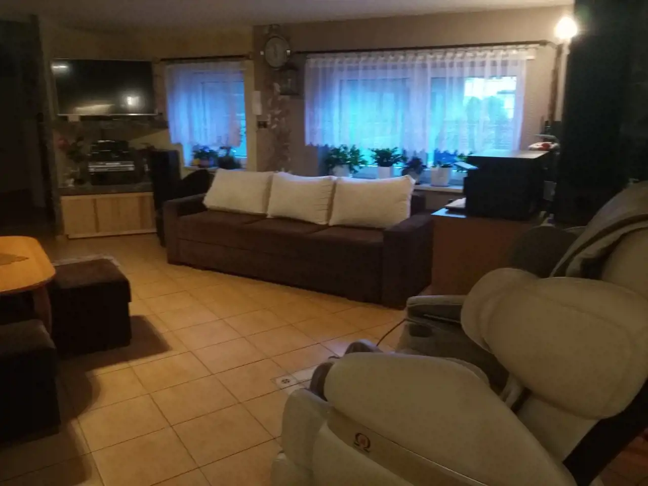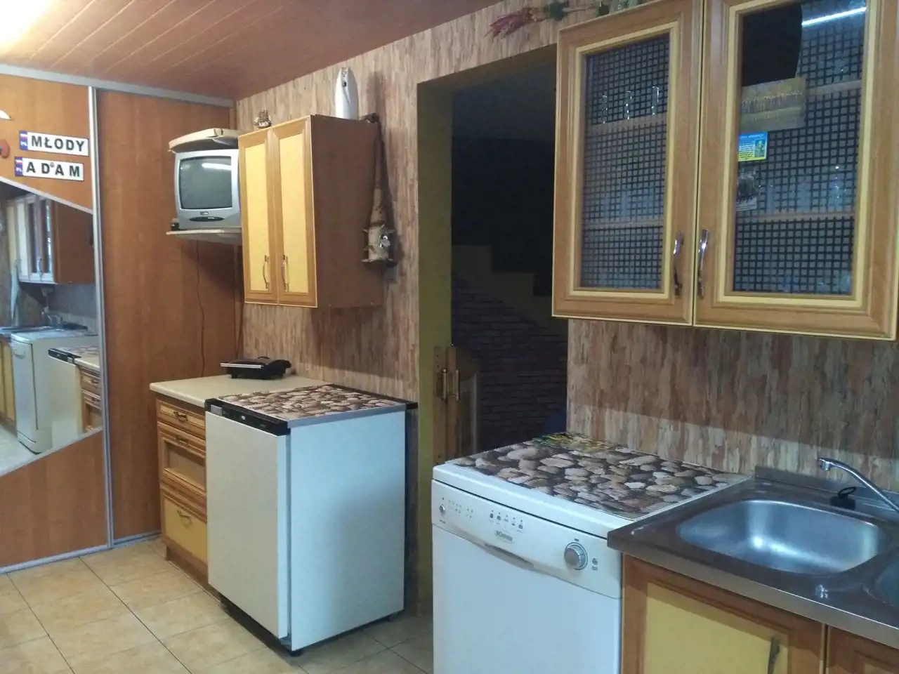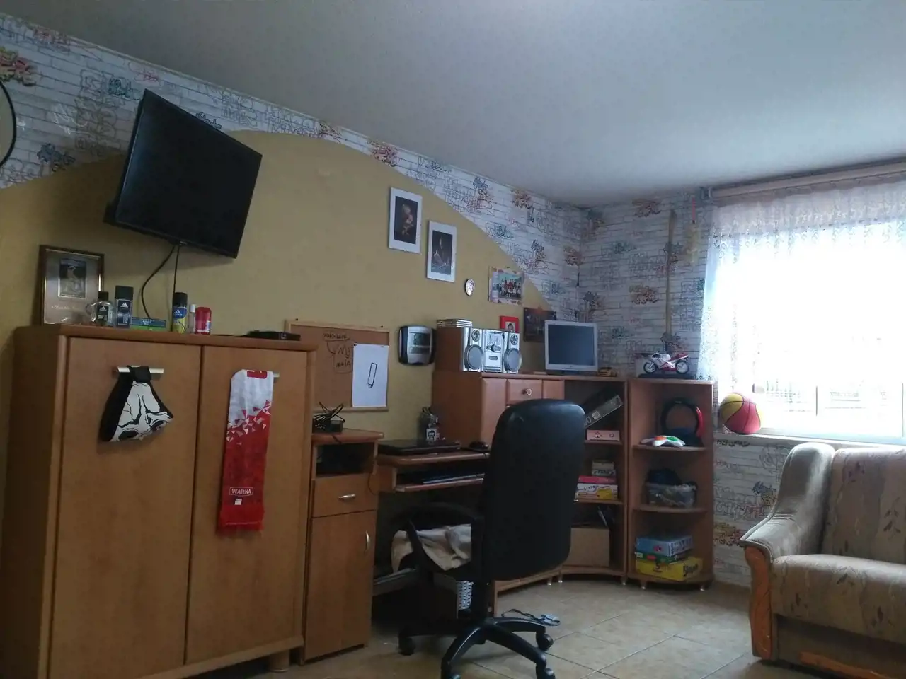 Drugi dom w zabudowie bliźniaczej z roku 1980 o powierzchni ok. 120 m.kw. Dom piętrowy z podpiwniczeniem, wybudowany z cegły ceramicznej, strop - płyta żelbetowa, dach w konstrukcji drewnianej, jednospadowy, pokryty papą. Okna pcv dobrej jakości w kolorze złoty dąb (dwa okna drewniane w piwnicy zostały niewymienione). W piwnicy wydzielone są dwa pomieszczenia: pokój ok. 17 m.kw, kotłownia ok. 20 m.kw, na piętrze znajdują się: salon o pow. ok. 20 m.kw, kuchnia ok. 15 m.kw oraz łazienka o pow. 2 m.kw, na piętra znajdują się dwa pokoje o pow. ok. 20 m.kw oraz 17 m.kw. Stan-domu do remontu.