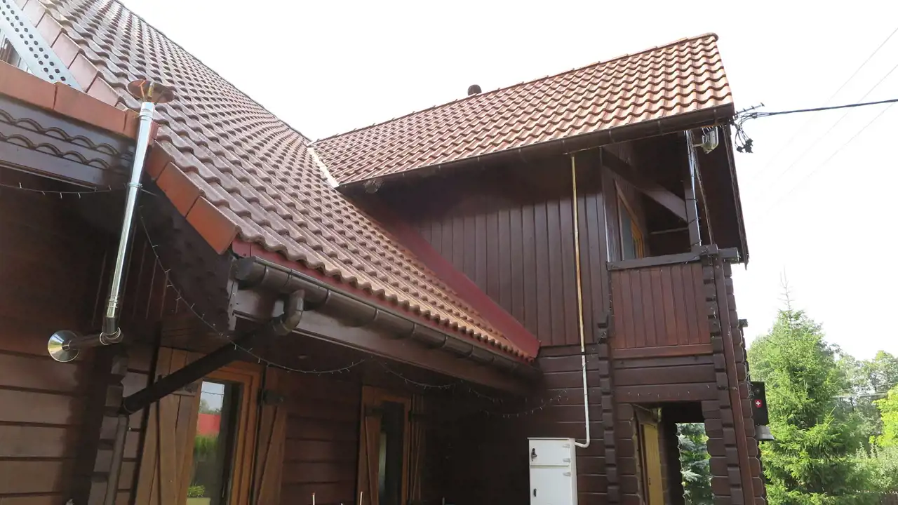Budynek wykonany z bala, składa się z 2 kondygnacji i poddasza.