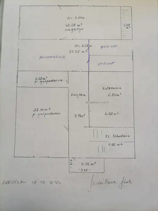 Opis: Sprzedam dom wolnostojący o powierzchni całkowitej 393 m.kw. usytuowany w cichej i spokojnej okolicy domów jednorodzinnych w Radwanicach, zaledwie kilka kilometrów od granic Wrocławia, na działce o powierzchni 1000 m.kw. Parter domu składa się z salonu o pow. 57,5 m.kw. z wyjściem na duży balkon o pow. 20 m.kw., kuchnia o pow. 12 m.kw. ze spiżarnia o pow. 6,5 m.kw., łazienka o pow. 4,5 m.kw. wiatrołap oraz dodatkowy pokój o pow. 11 m.kw. z własną toaletą. Piętro to pięć pokoi o pow. 27 m.kw., 20 m.kw.15 m.kw. , 14m.kw oraz 12m.kw z czego dwa są przejściowe, a jeden z nich ma własną łazienkę o pow. 4,8 m.kw. oraz łazienka wspólna o pow. 4 m.kw. Poddasze domu jest nieużytkowe, jednak z możliwością przekształcenia go w dodatkową powierzchnię mieszkalną. Przyziemie domu to część w której prowadzona byłą działalność i znajduje się tam pomieszczenie o pow. 48 m.kw. - sala gimnastyczna oraz trzy pomieszczenia o pow. 20 m.kw., 15 m.kw i 15 m.kw. , w których znajdowały się poczekalnia i dwa gabinety kosmetyczne. Pozostałe pomieszczenia w przyziemiu, to pomieszczenia gospodarcze i kotłownia. Do części w przyziemiu można się dostać dwoma wejściami. Powoduje to, że jest to niezależna część domu. W łatwy sposób dom można przekształcić w dom wielorodzinny z osobnymi wejściami na każdy poziom lub część w przyziemiu przeznaczyć pod działalność (kosmetyczną, medyczną, fitness, warsztat, magazyn itp.).