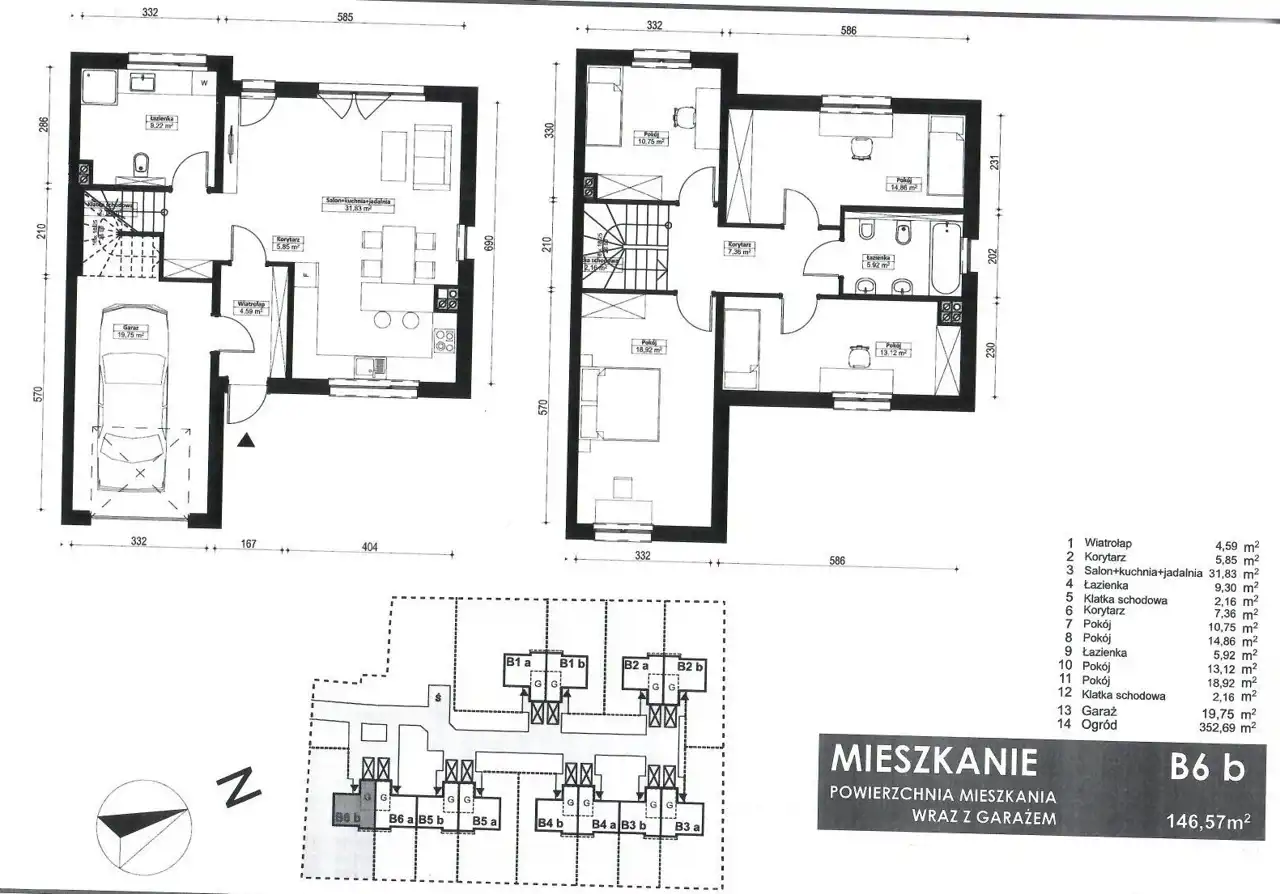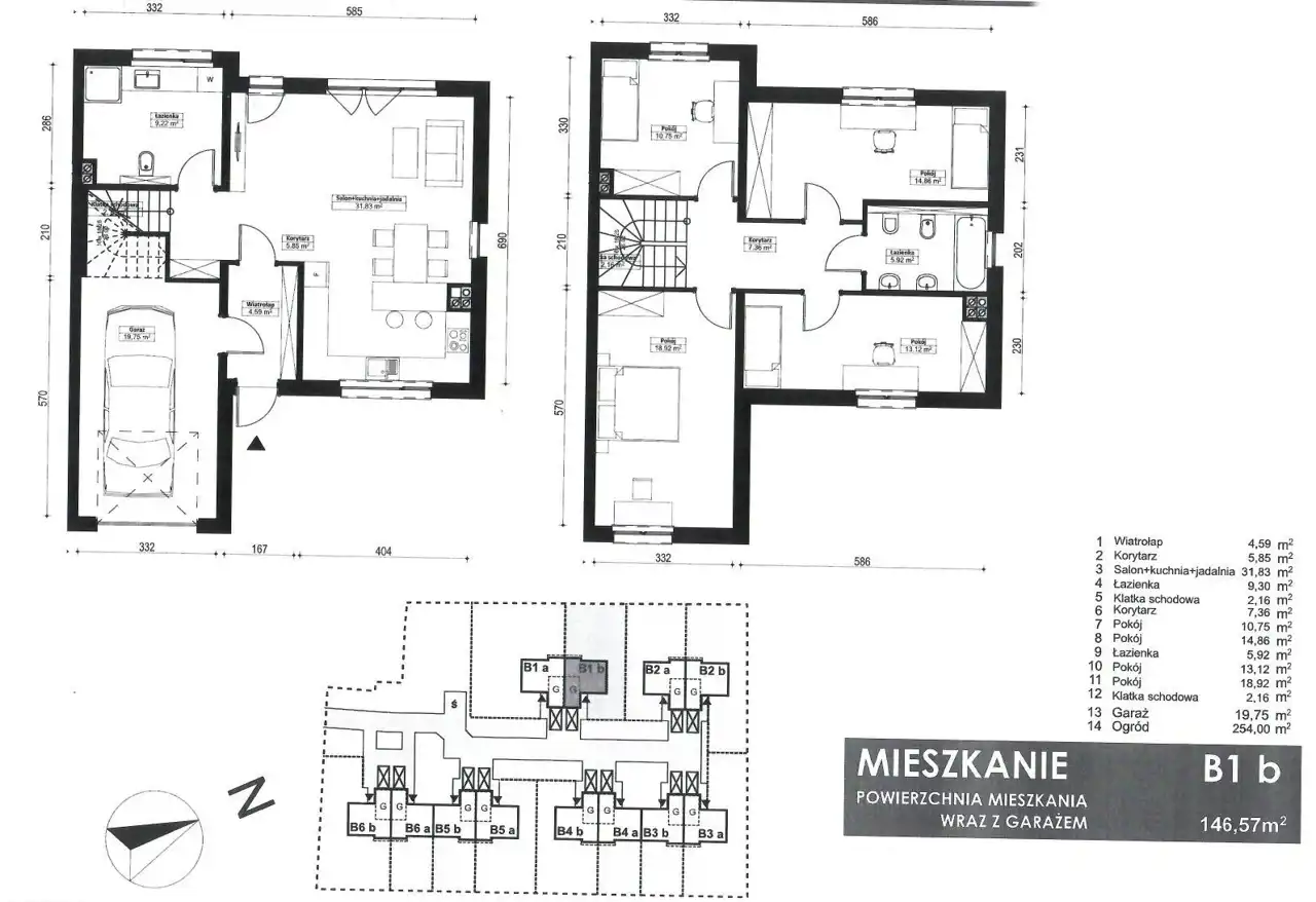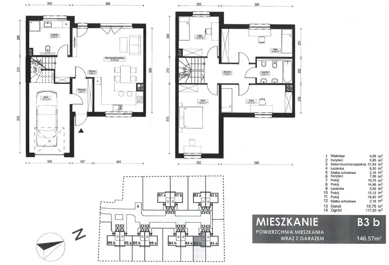 Powierzchnia mieszkalna wraz z garażem : 146,57 m.kw