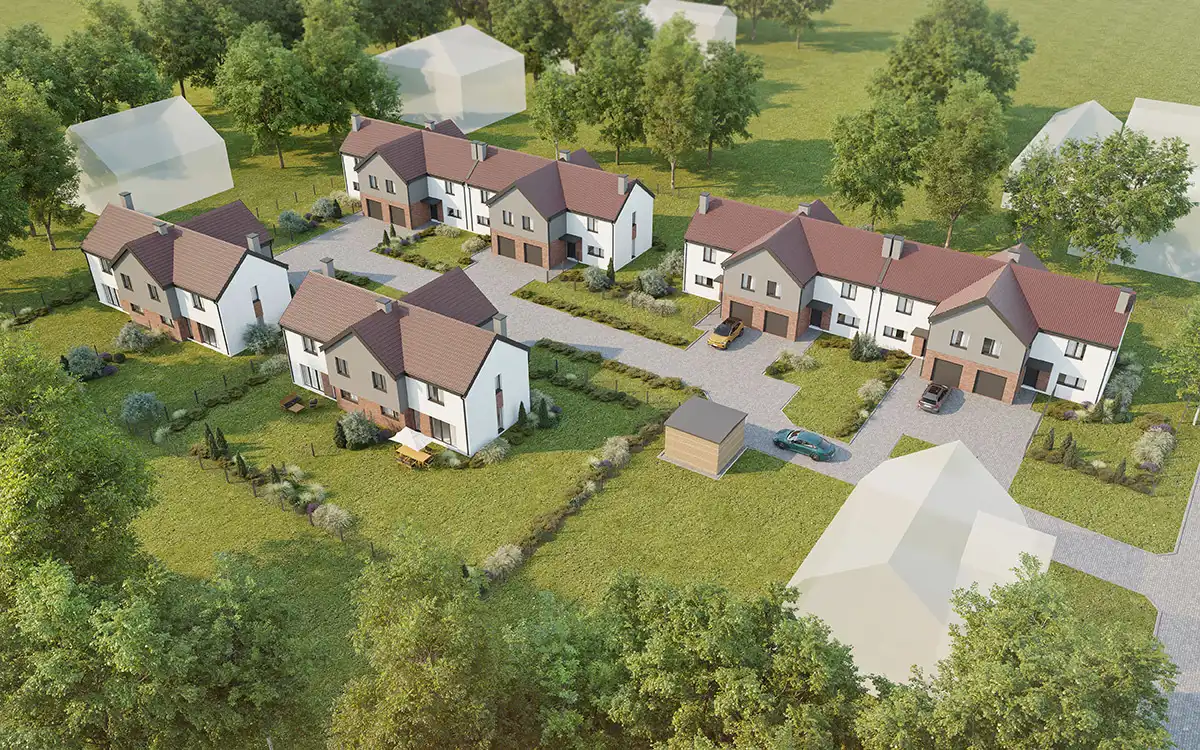 Inwestycja zostanie oddana do użytkowania z kompleksowym zagospodarowaniem terenu obejmującym zieleń urządzoną, ogrodzenia, dojścia i dojazdy oraz małą architekturę. Osiedle nabierze charakteru zamkniętego.