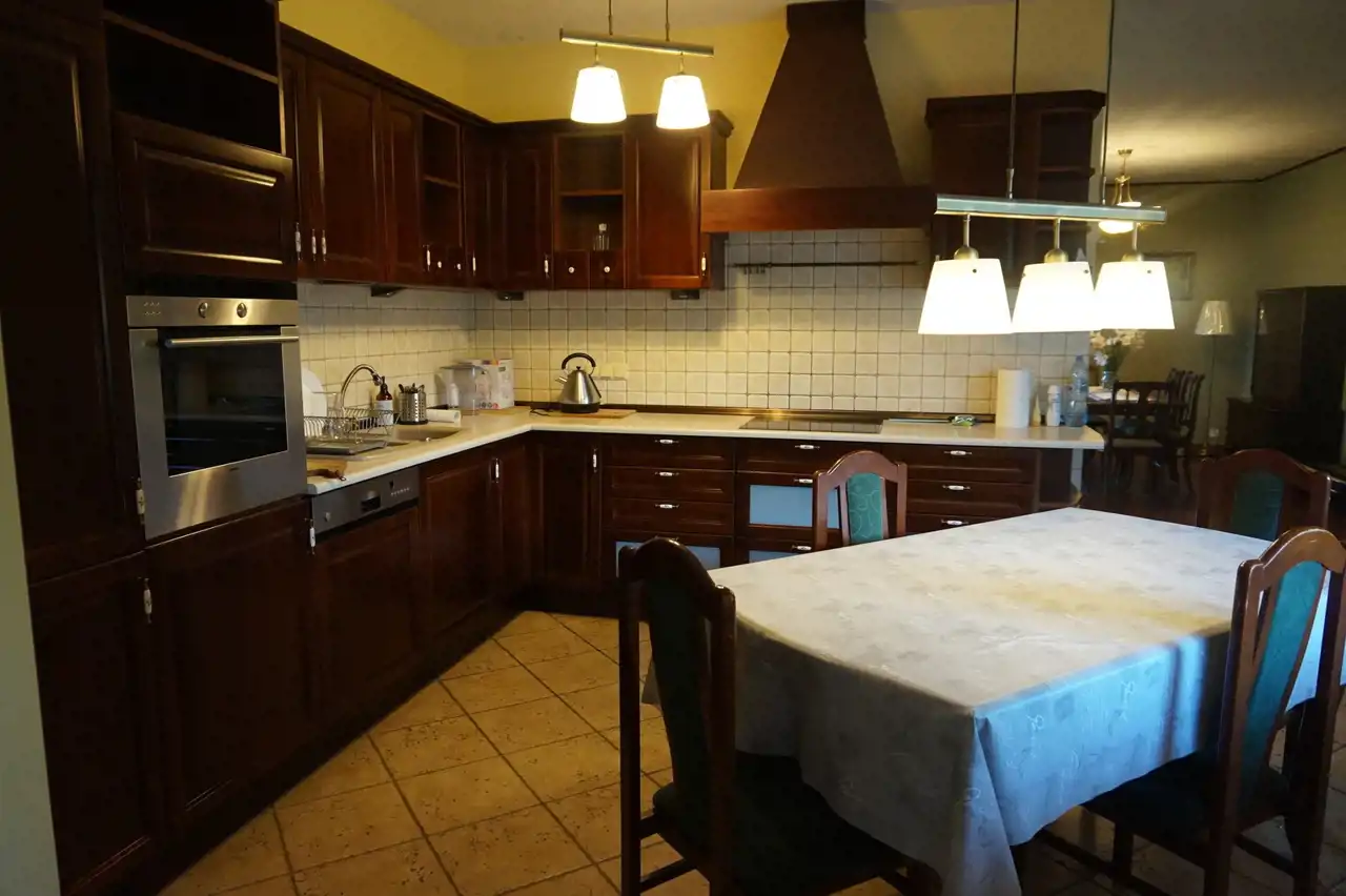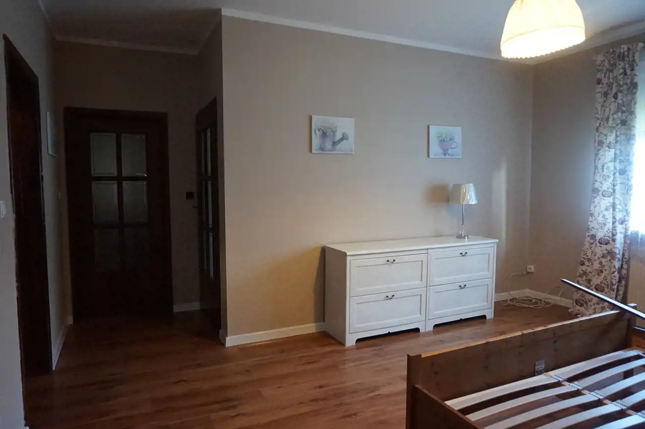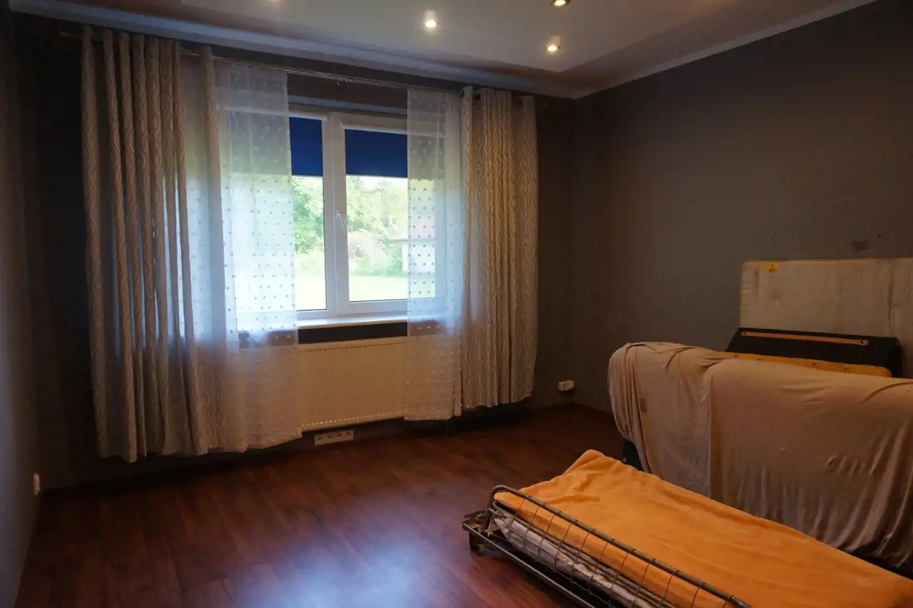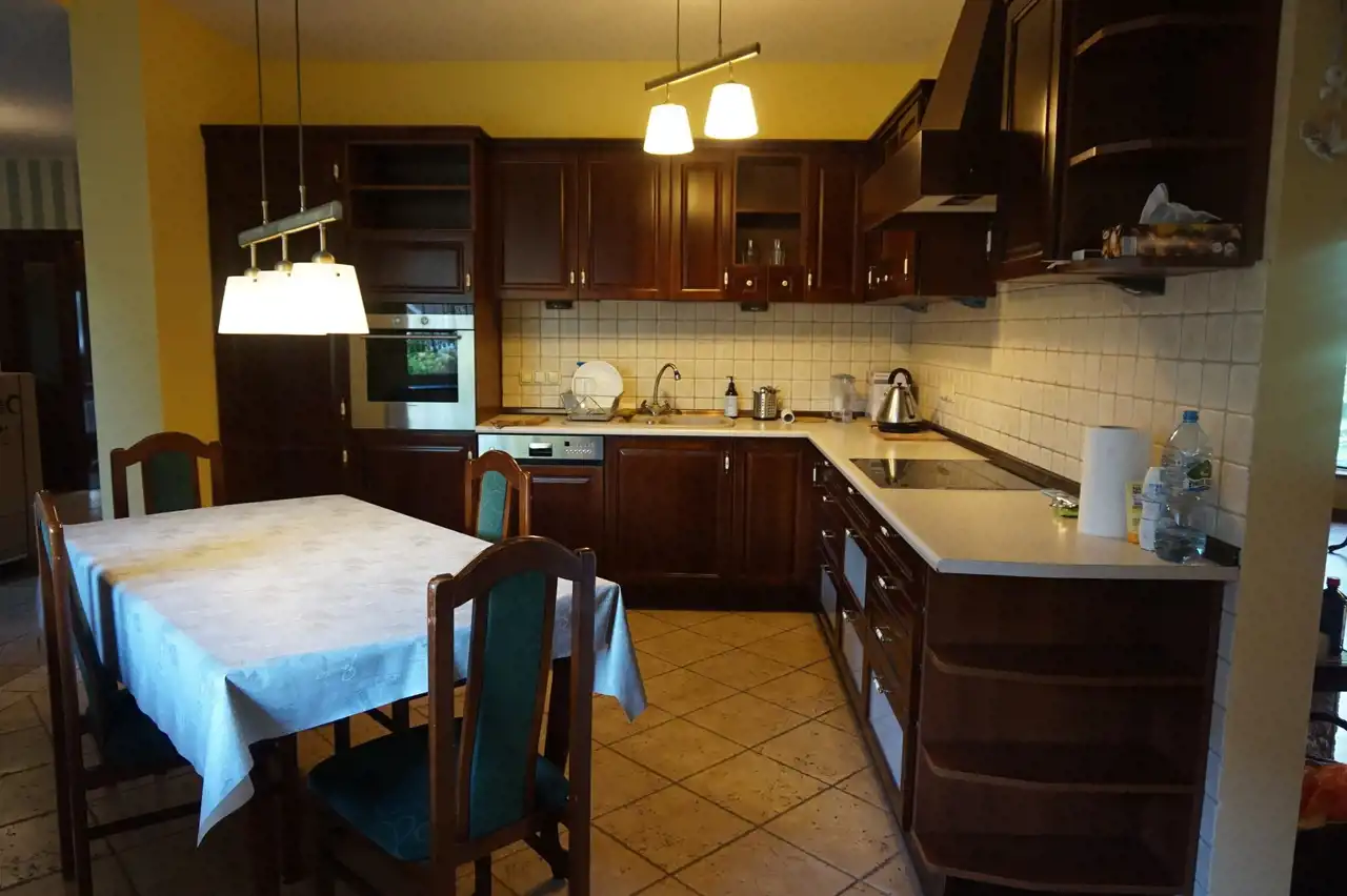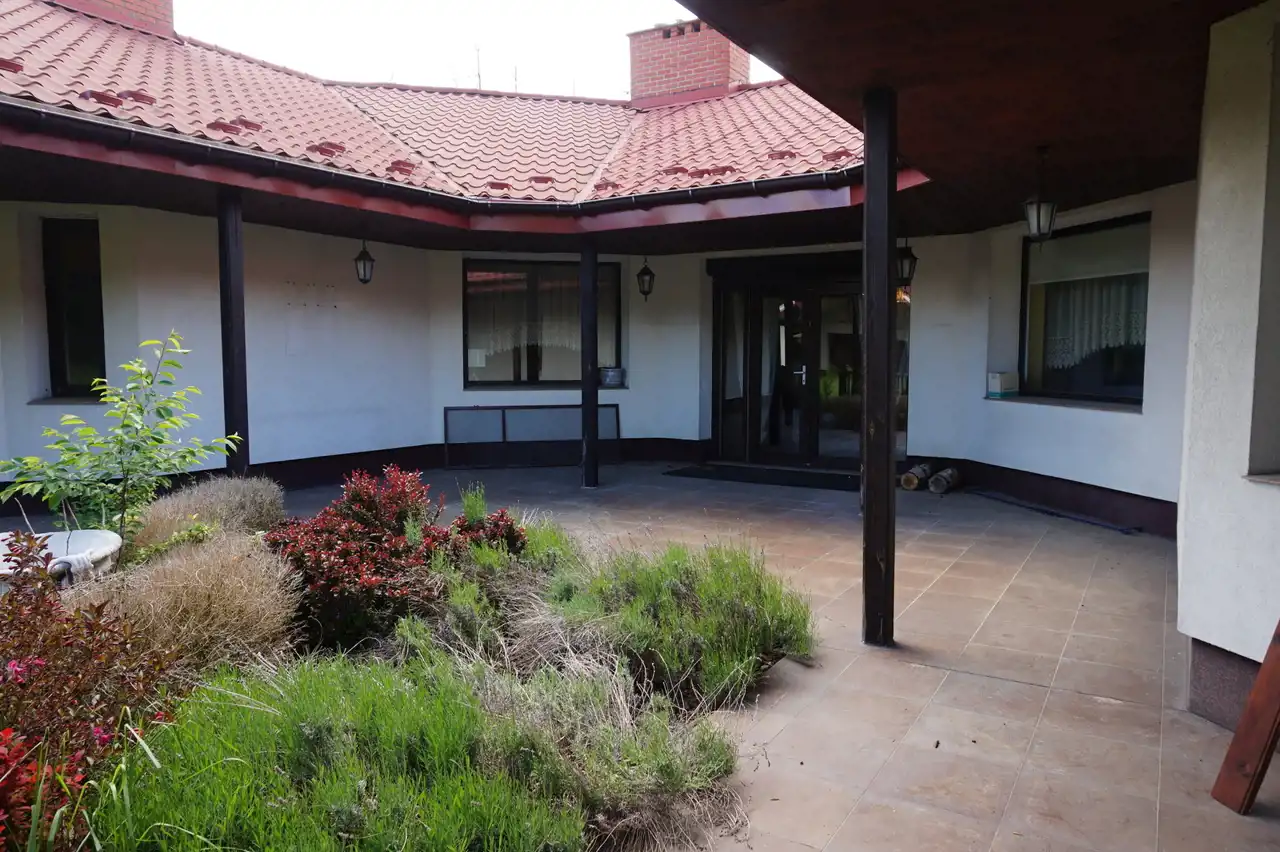 Północ Nieruchomości Pabianice ma do wynajmu funkcjonalny, parterowy dom o powierzchni 261 m.kw usytuowany w Pabianicach. Dom wybudowany w roku 1997 z cegły POROTHERM, docieplony, okna pcv, drzwi wejściowe antywłamaniowe. Działka o powierzchni 3 606 m.kw ogrodzona, brama wjazdowa oraz furtka. Przed domem dużo miejsc parkingowych. Dom składa się z salonu o powierzchni ok. 60 m.kw, 4 sypialni o powierzchniach około 20 m.kw, 18,5 m.kw, 16 m.kw oraz 9,5 m.kw, kuchni o powierzchni ok. 21 m.kw wraz ze spiżarnią, trzech łazienek (w tym jedna przy jednym z pokoi, dodatkowa znajduje się tak również garderoba) wiatrołapu i kotłowni. Kuchnia wyposażona w meble w zabudowie wraz ze sprzętem agd (zlewozmywak, zmywarka, lodówka, kuchenka, piekarnik), na podłodze położona jest terakota, przy kuchni znajduje się spiżarnia wyposażona w dodatkową lodówkę. Salon posiada powierzchnię, którą z łatwością można podzielić na trzy osobne pokoje. Łazienki wykończone glazurą i terakotą, wyposażone w wannę, prysznic, umywalki, bidet oraz wc. W domu znajduje się osobne pomieszczenie pełniące funkcję kotłowni oraz pralni (możliwość doposażenia w pralkę). Działka przestronna, odgrodzona od sąsiadów, daje poczucie prywatności. Budynek garażowy o powierzchni ok. 42 znajdujący się w końcu działki można zaadoptować na cele mieszkalne. Z domu jest bezpośrednie wyjście na taras.