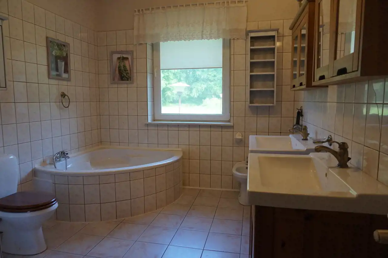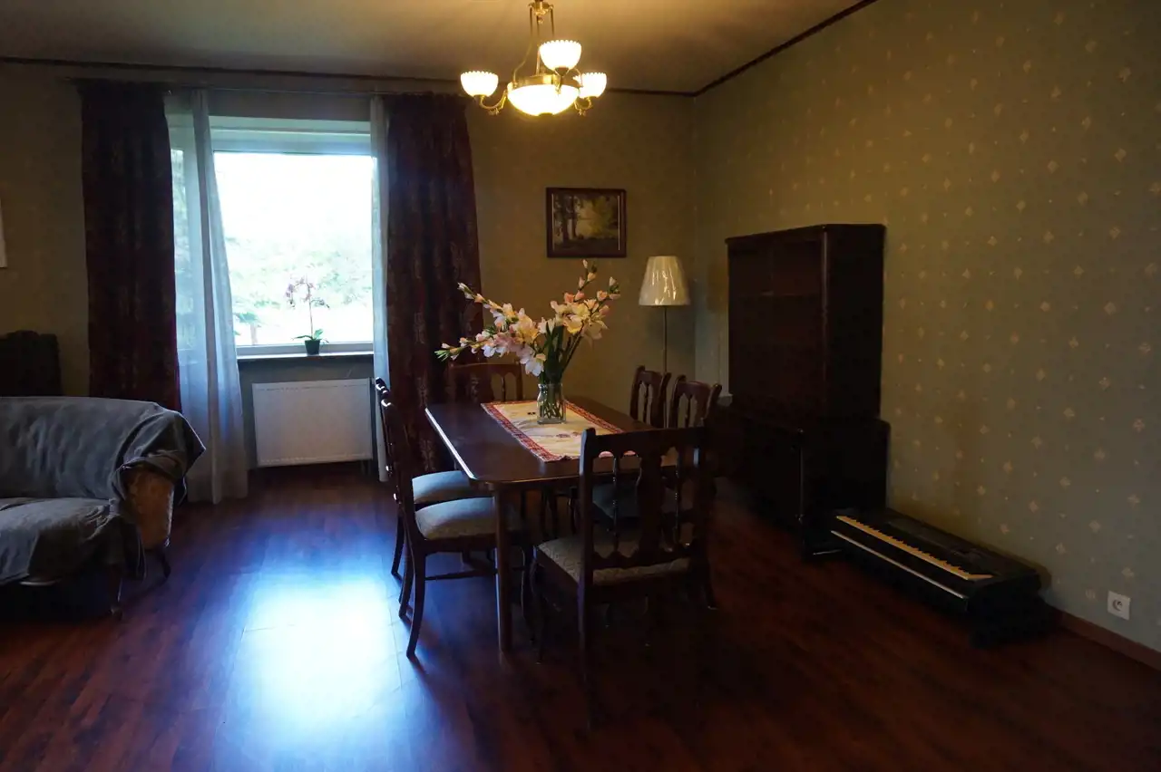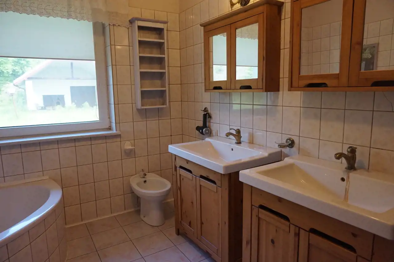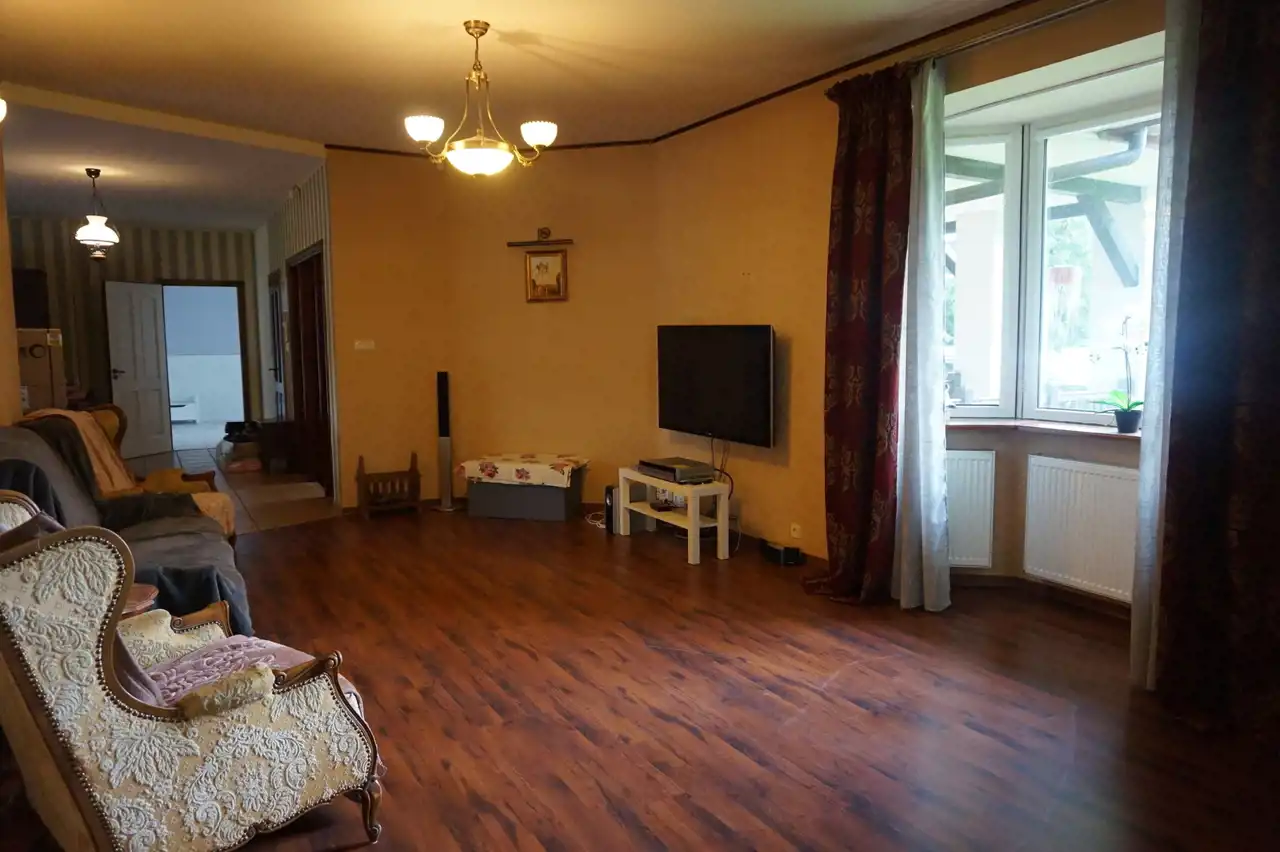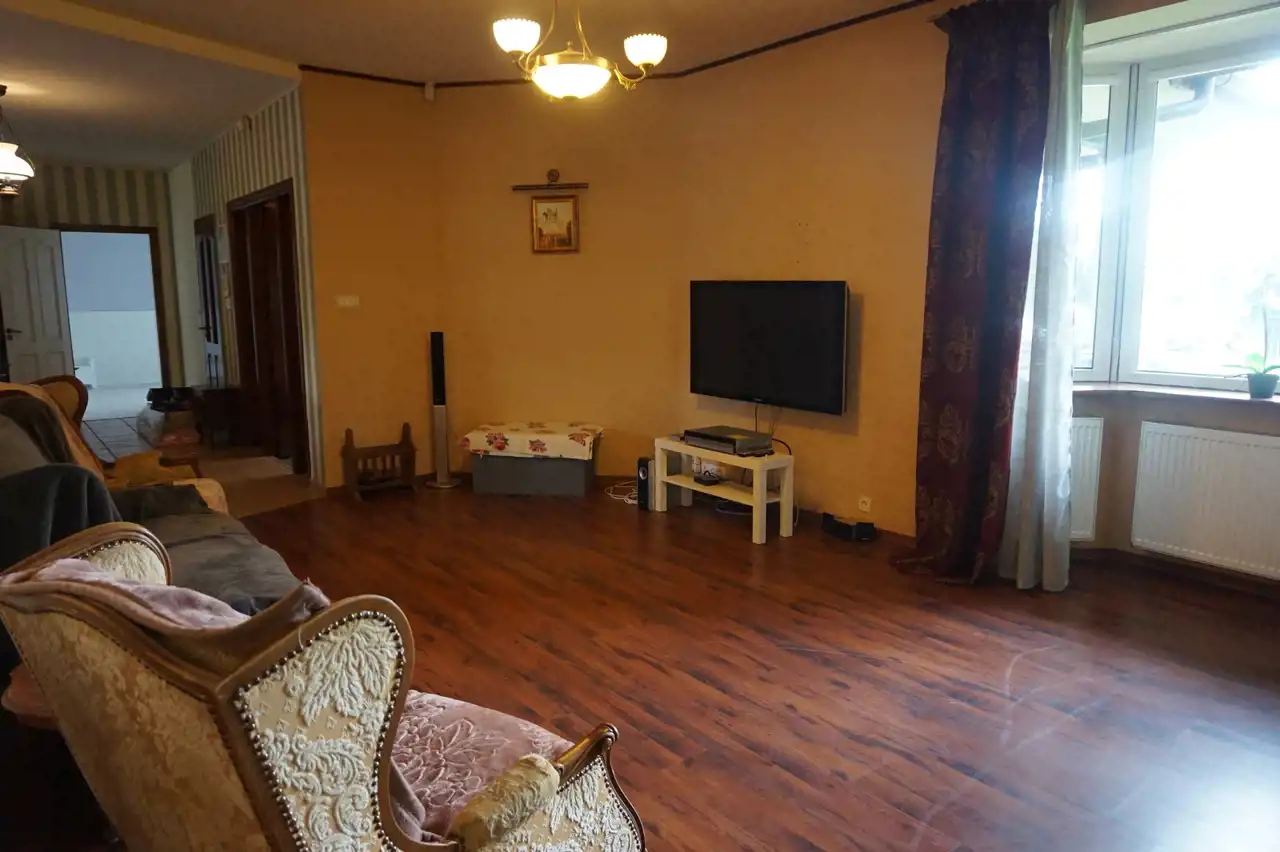 Północ Nieruchomości Pabianice ma do wynajmu funkcjonalny, parterowy dom o powierzchni 261 m.kw usytuowany w Pabianicach. Dom wybudowany w roku 1997 z cegły POROTHERM, docieplony, okna pcv, drzwi wejściowe antywłamaniowe. Działka o powierzchni 3 606 m.kw ogrodzona, brama wjazdowa oraz furtka. Przed domem dużo miejsc parkingowych. Dom składa się z salonu o powierzchni ok. 60 m.kw, 4 sypialni o powierzchniach około 20 m.kw, 18,5 m.kw, 16 m.kw oraz 9,5 m.kw, kuchni o powierzchni ok. 21 m.kw wraz ze spiżarnią, trzech łazienek (w tym jedna przy jednym z pokoi, dodatkowa znajduje się tak również garderoba) wiatrołapu i kotłowni. Kuchnia wyposażona w meble w zabudowie wraz ze sprzętem agd (zlewozmywak, zmywarka, lodówka, kuchenka, piekarnik), na podłodze położona jest terakota, przy kuchni znajduje się spiżarnia wyposażona w dodatkową lodówkę. Salon posiada powierzchnię, którą z łatwością można podzielić na trzy osobne pokoje. Łazienki wykończone glazurą i terakotą, wyposażone w wannę, prysznic, umywalki, bidet oraz wc. W domu znajduje się osobne pomieszczenie pełniące funkcję kotłowni oraz pralni (możliwość doposażenia w pralkę). Działka przestronna, odgrodzona od sąsiadów, daje poczucie prywatności. Budynek garażowy o powierzchni ok. 42 znajdujący się w końcu działki można zaadoptować na cele mieszkalne. Z domu jest bezpośrednie wyjście na taras.
