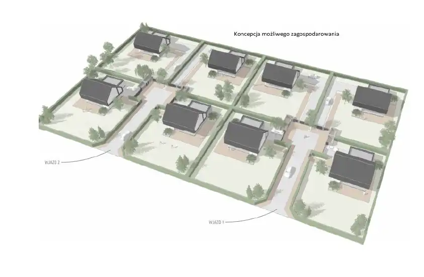 Brak miejscowego planu zagospodarowania przestrzennego, możliwość uzyskania warunków zabudowy i podziału na mniejsze działki.