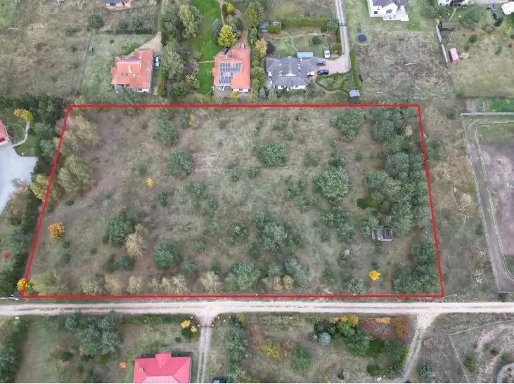 Działka otoczona jest małymi działkami w części zabudowanymi budynkami jednorodzinnymi mieszkaniowymi. Działki w sąsiedztwie od około 700m do około 3000m2. Na działce woda i prąd, gaz w drodze. Droga dojazdowa utwardzona, oświetlona. Teren działki ogrodzony, obecnie niezagospodarowany porośnięta nielicznymi drzewami i krzewami samosiejkami.