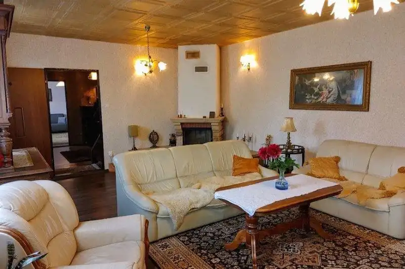 Na działce dodatkowo jest budynek gospodarczy/stodoła/garaż z kuchnią letnią około 140m2 oraz szklarnia. W części ogrodu jest zadbany stary sad. Budynek dobrze wyposażony, w bardzo dobrym stanie wykończenia. W skład domu wchodzi 5 pokoi, 2 łazienki, 2 toalety, kuchnia na parterze oraz użytkowym poddaszu. Dach pokryty dachówką, nowa elewacja.