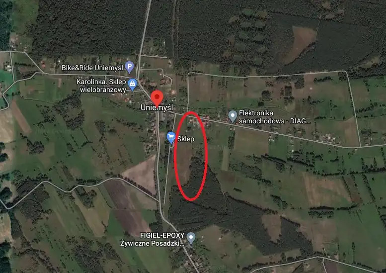 Działki budowlane o powierzchniach około 1000m2 objęte miejscowym planem zagospodarowania przestrzennego w miejscowości Uniemyśl gmina Police.