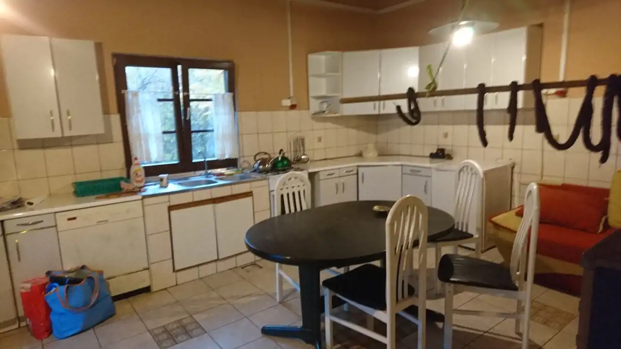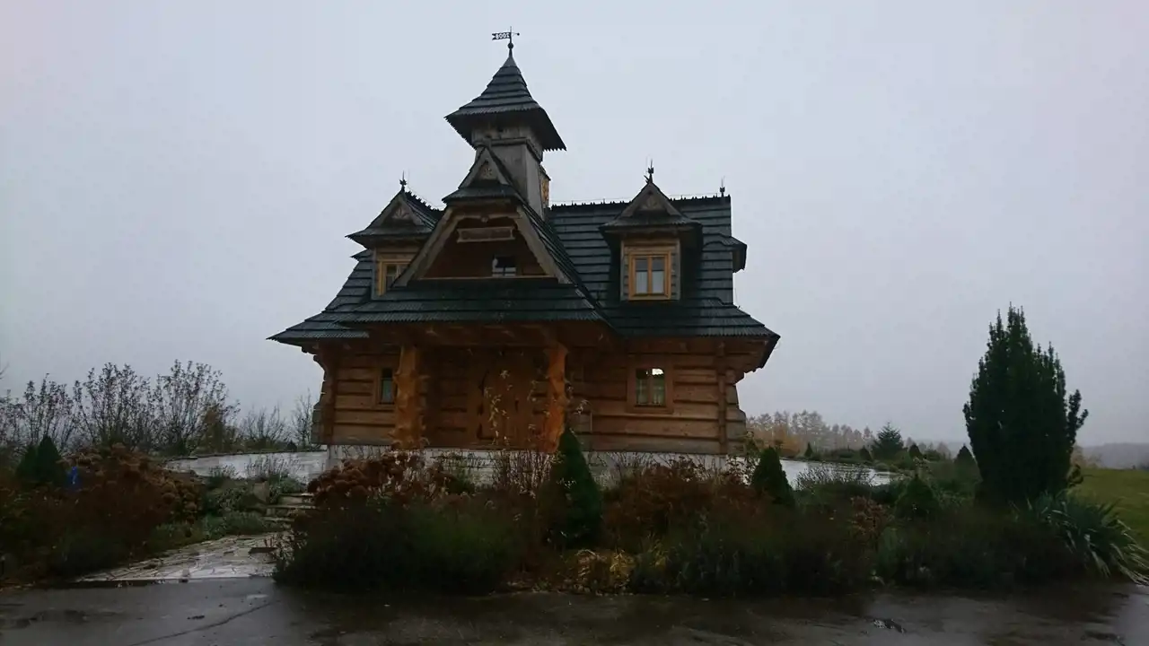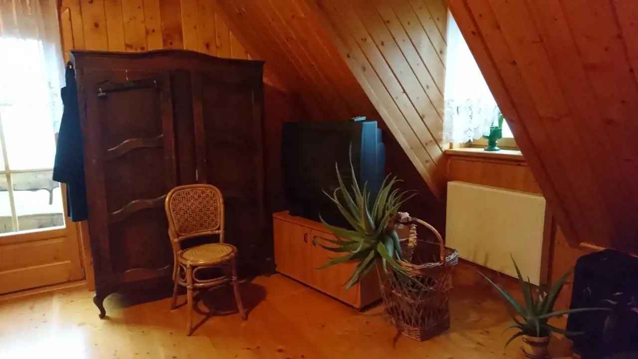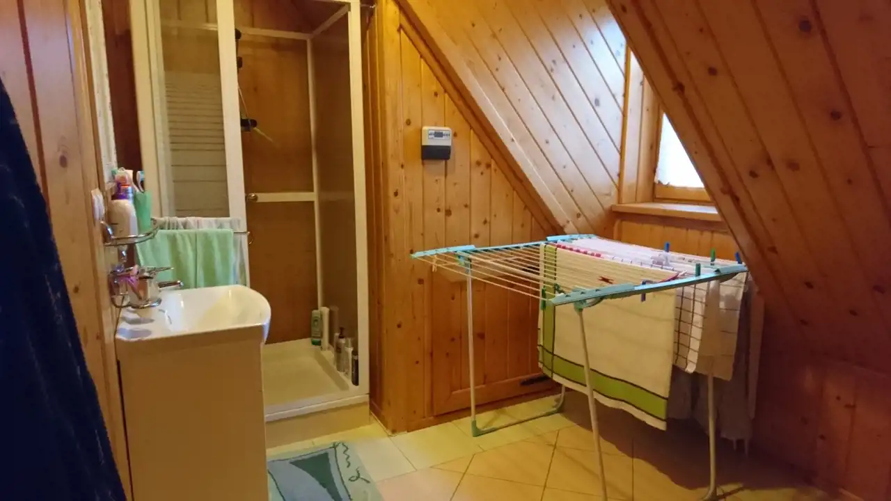 Na działce usytuowany jest dom wolnostojący o powierzchni użytkowej 140 m. kw. Parter domu zbudowanego z drewna - jodły górskiej, składa się z salonu o pow. 30 m.kw., kuchni z o pow. 14 m.kw., pokoju o pow. 16 m.kw. i łazienki o pow. 9,8 m.kw. Piętro składa się z łazienki o pow. 10 m.kw., trzech pokoi o pow. 15 m.kw., 15 m.kw. i 10 m.kw. oraz korytarza. Okna drewniane z ekspozycją na wszystkie strony świata, przy czym wyjście z salonu na taras i ogród jest od strony południowo-zachodniej. Dach pokryty gontem drewnianym. Ogrzewanie elektryczne i kominkowe. Na podłogach położone są drewno i gres. Działka ogrodzona i zagospodarowana. Dodatkowo w ogrodzie duży domek o pow. 100 m.kw, w którym znajduje się osobna kuchnia letnia, garaż i miejsce do składania drewna.
