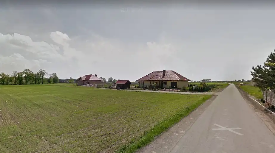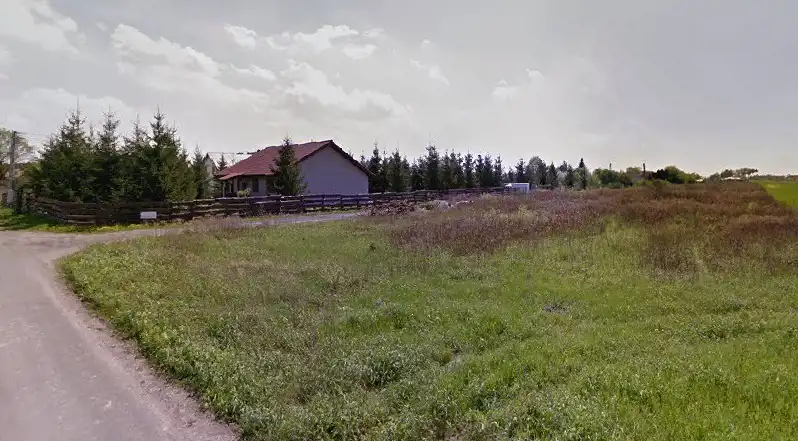 Działka nie jest zagospodarowana, nie jest ogrodzona, posiada skrzynkę ZK z prądem. Działka płaska, o kształcie zbliżonym do prostokąta z frontem 27m. Podział zrealizowano tak aby przejazd do działki w drugiej linii był szerokości 4,5m. Właściciel występuje teraz o warunki zabudowy na działkę z tej oferty. W pobliżu woda i gaz, nie ma kanalizacji.