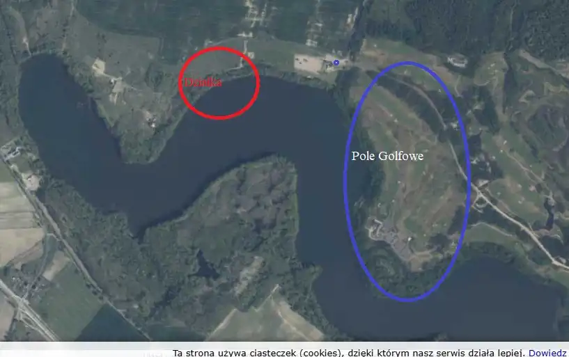 Polecam działkę z uwagi na atrakcyjne położenie nad jeziorem i przy polu golfowy.