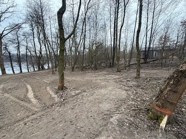 Działka jest prawie płaska, sąsiaduje z pasem działki gminnej otaczającej jezioro (pas plaży) czyli można uznać, że działka ma granicę z jeziorem. Teren działki jest oczyszczony , wykarczowano drzewa i krzewi, grunt powierzchniowo przesiany w celu usunięcia pozostałości korzeni. Oczyszczono też pas od jeziora. Zdjęcia przedstawiają działkę i otoczenie. Odległość do pola golfowego około 400m. Na sąsiednich działkach już są budowane domy lub wybudowane. Pole golfowe w pełni funkcjonuje. Jezioro jest wędkarsko zagospodarowane, z pomostami wędkarskimi i dużym molo.