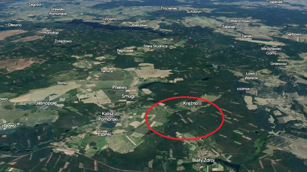 Działka rolna o powierzchni 9,6ha w Krężno, gmina Kalisz Pomorski, powiat drawski na Pojezierzu Drawskim.