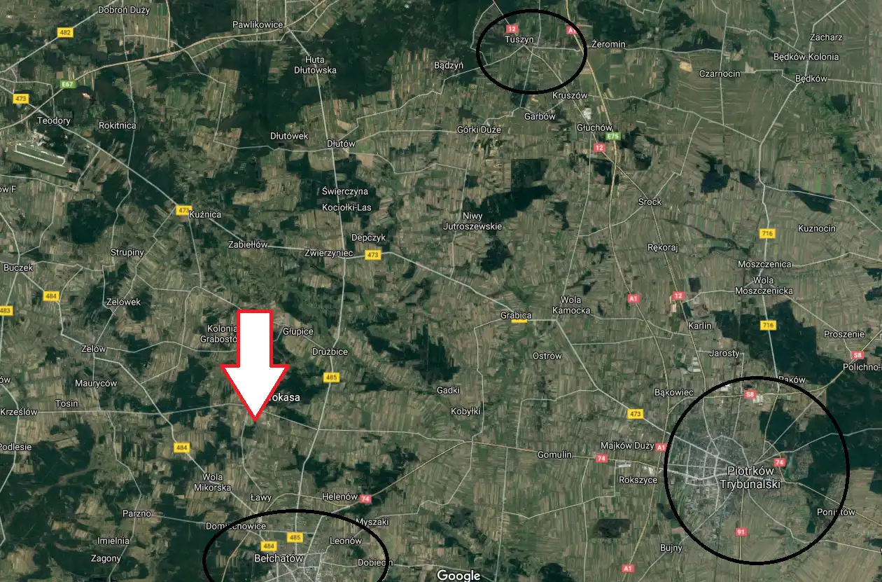 Lokalizacja: około 4 km od trasy Pabianice - Bełchatów i 6 km od trasy krajowej numer 74 do Bełchatowa , około 11 km od Bełchatowa