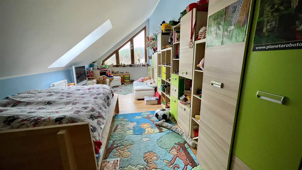 Piętro: Sypialnia , garderoba ; 2- pokoje ; łazienka z WC - pokój dziecięcy ; pralnia oraz balkon.